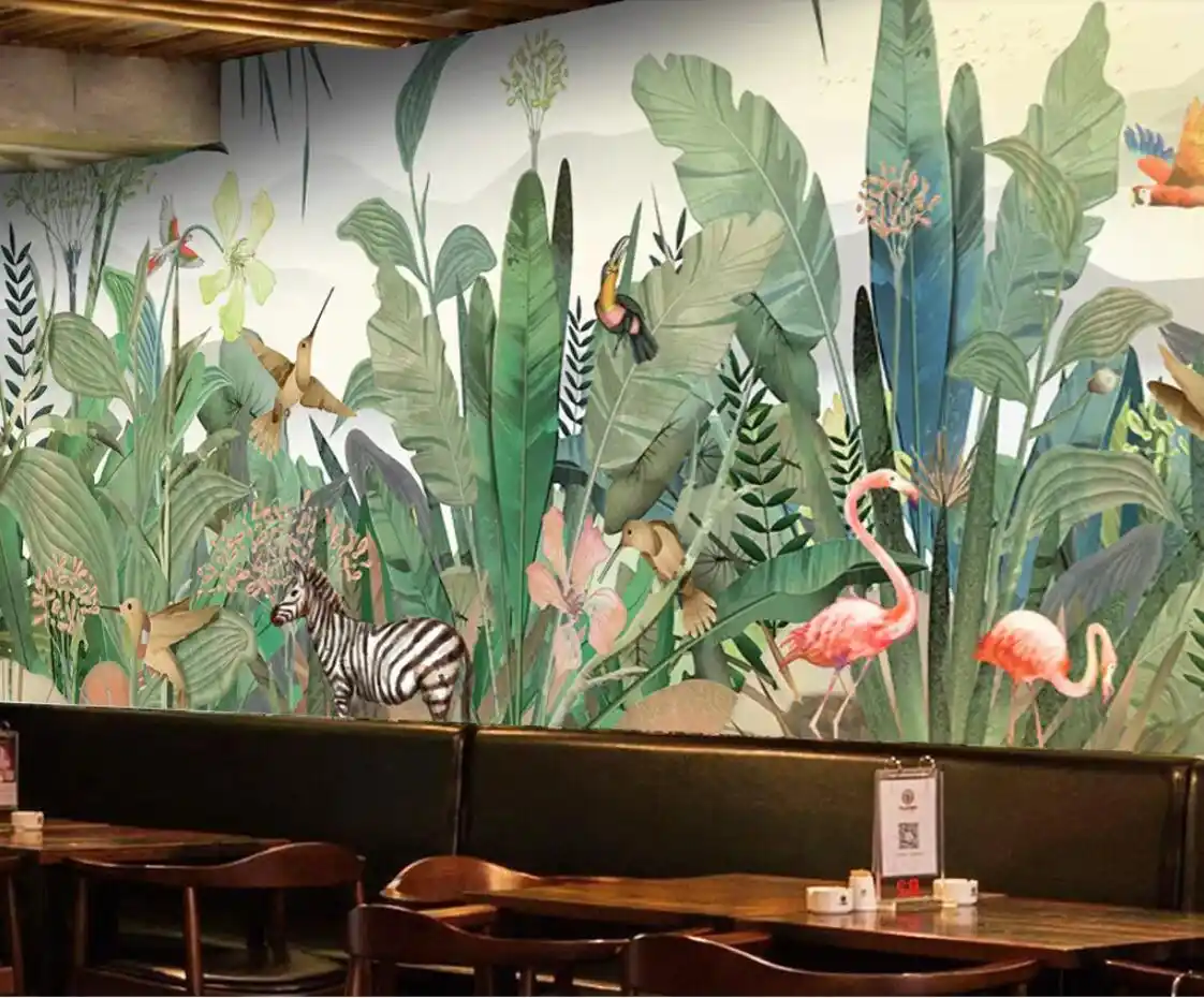 Southeast Asia Tropical Mural Bird Zebra Banana Leaf Wallpapers