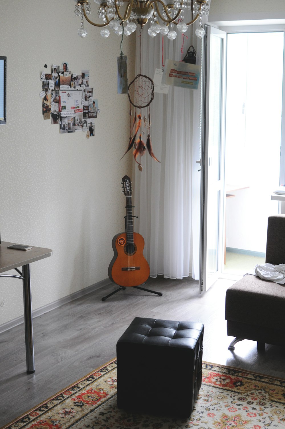 Brown Acoustic Guitar On Black Couch Photo Free Furniture Image