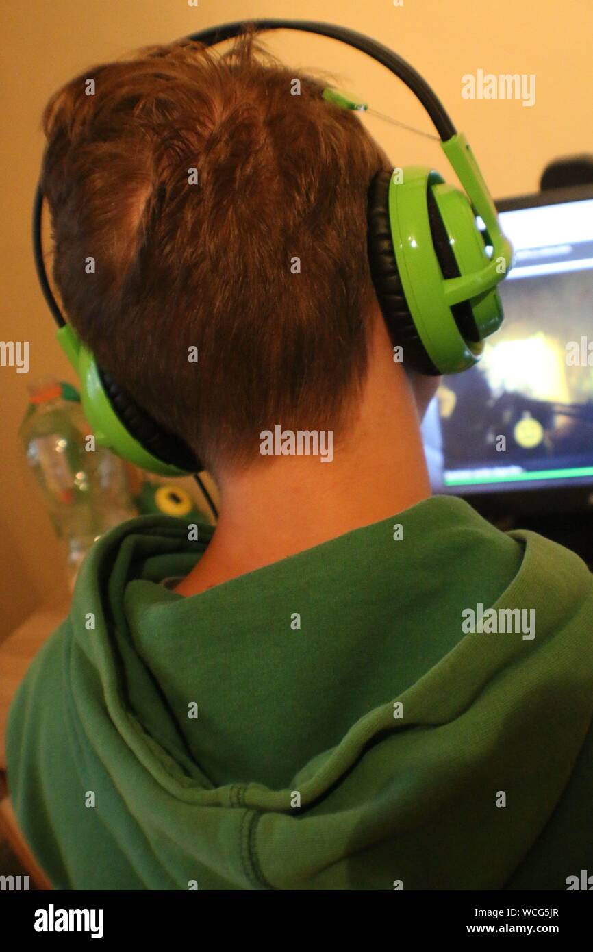 Over The Shoulder View Of Man Listening To Music On Headphones 4k