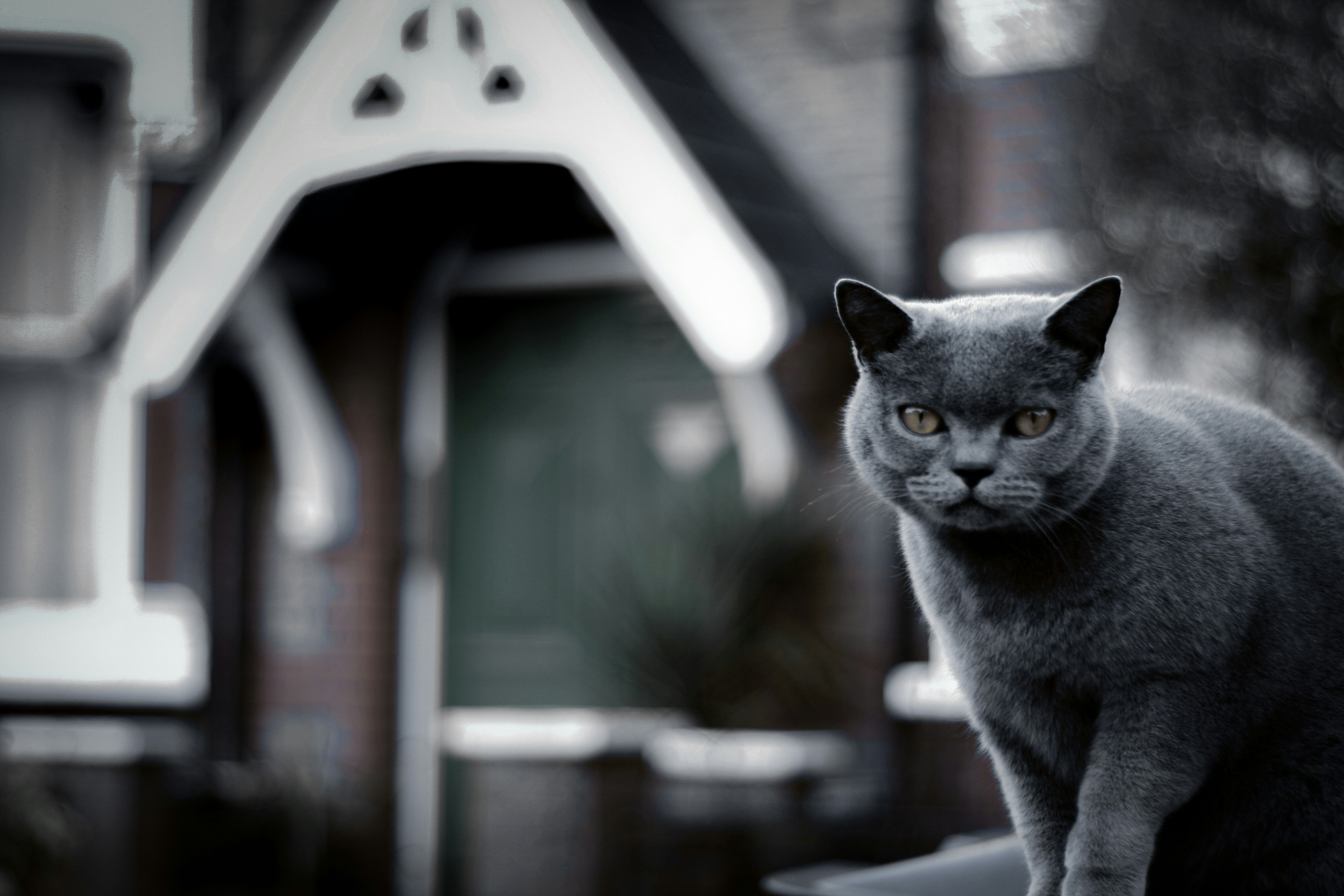 Russian Blue Cat On Brown Wooden Table Photo Free Pet Image On