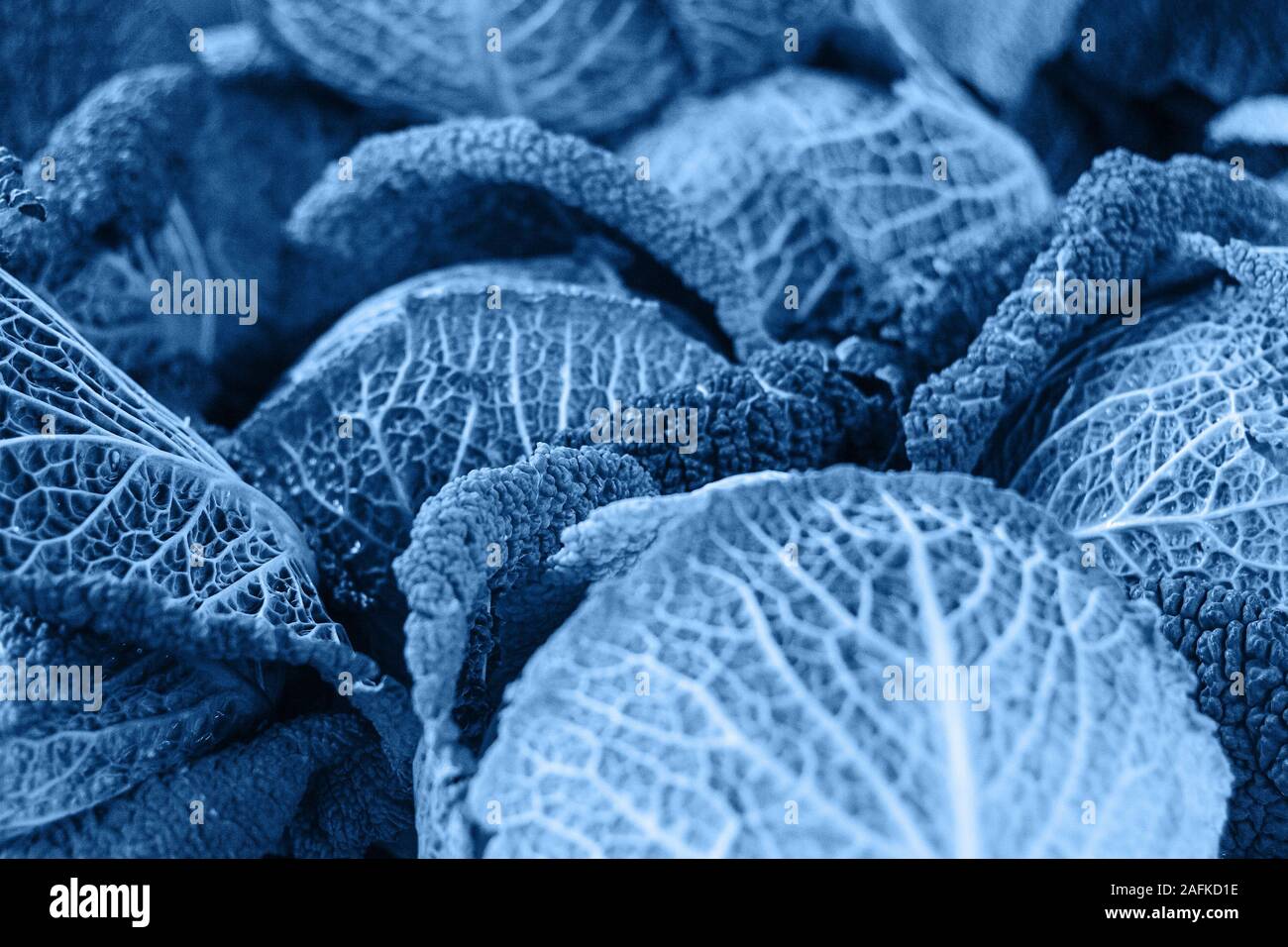 Closeup Cabbage Background In Trendy Classic Blue Color Stock