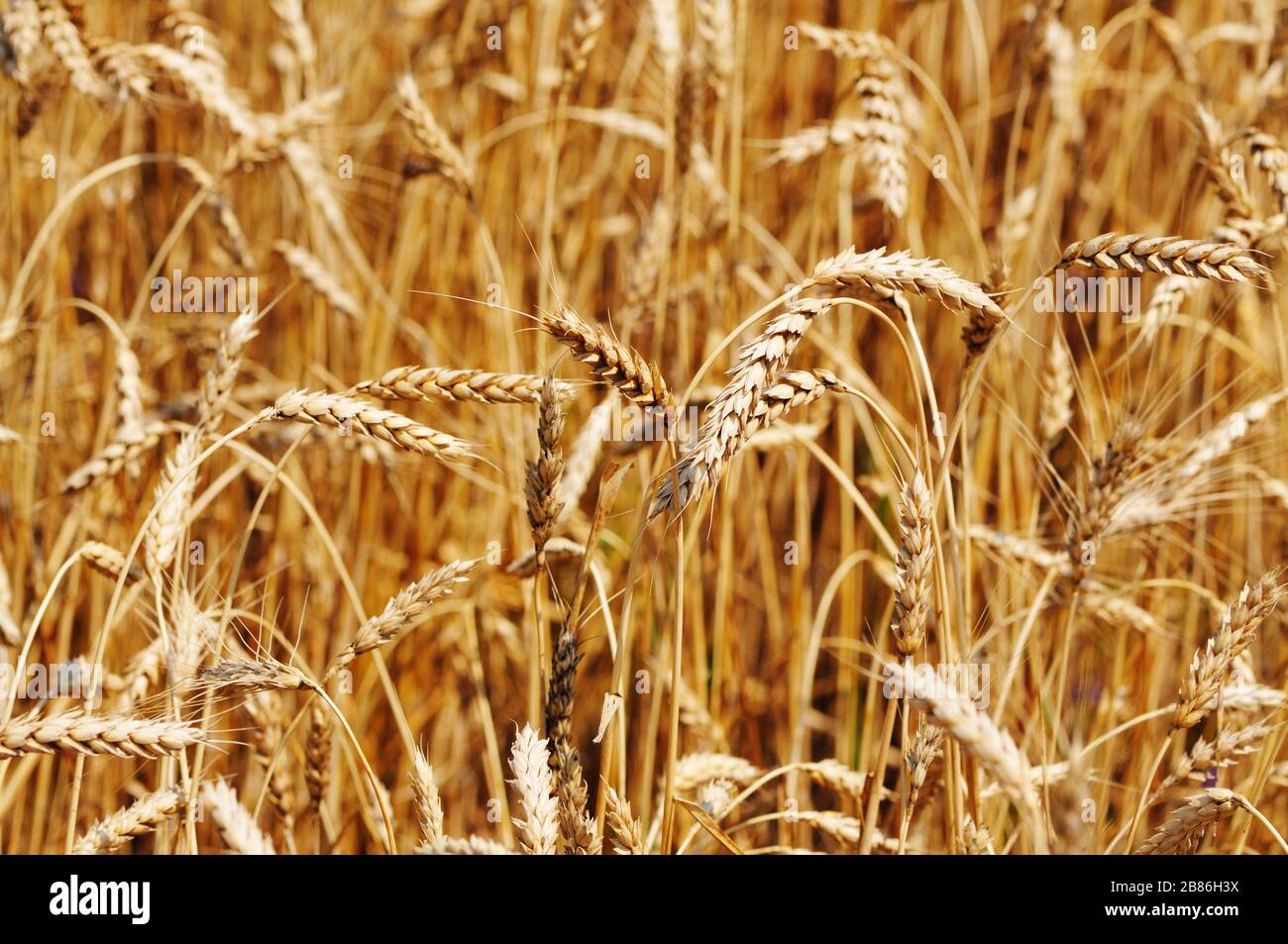 Close Up Of Golden Wheat Spikes On Sunny Summer Clear Day