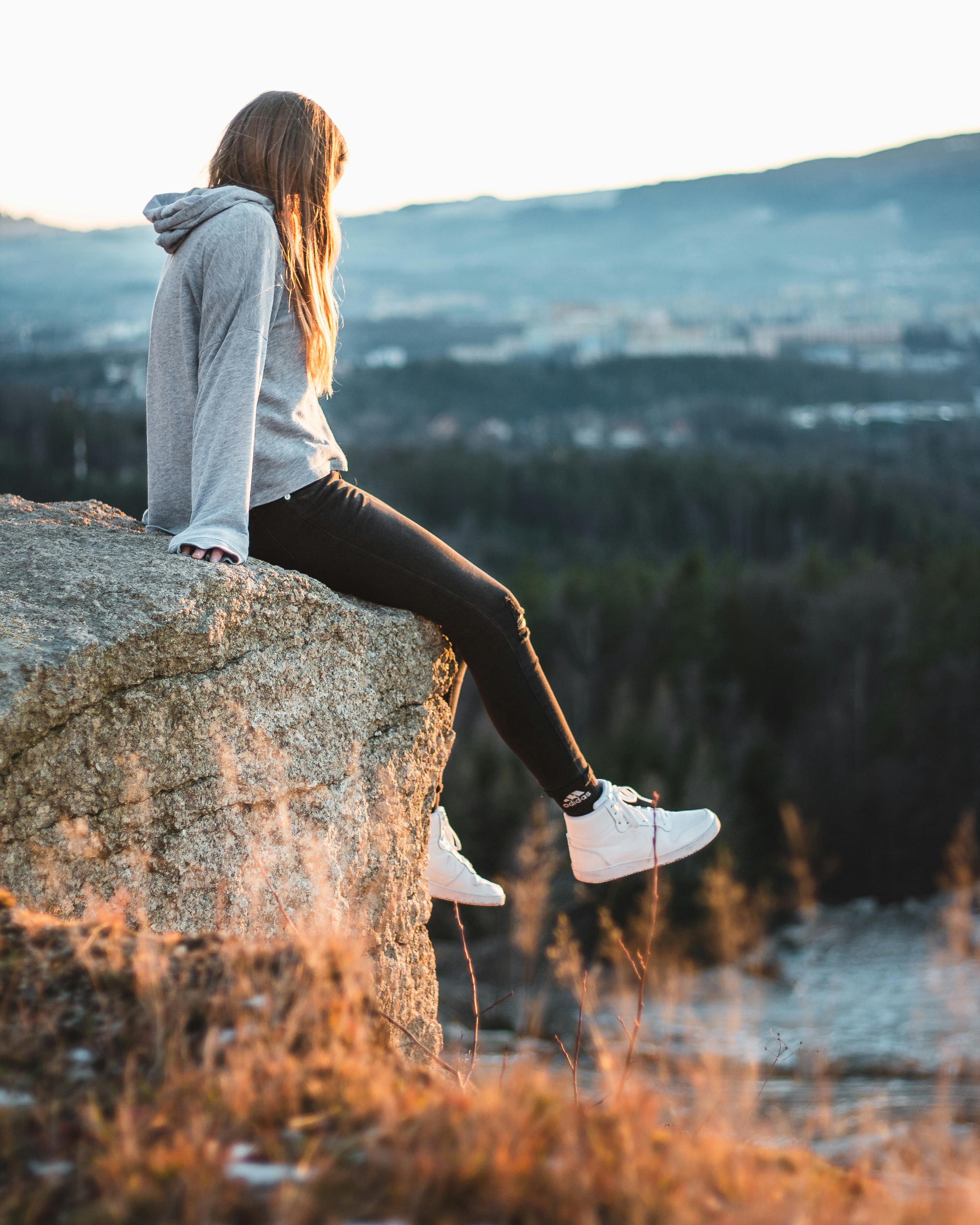 Person Sitting On Rock At Golden Hour Free Stock Photo
