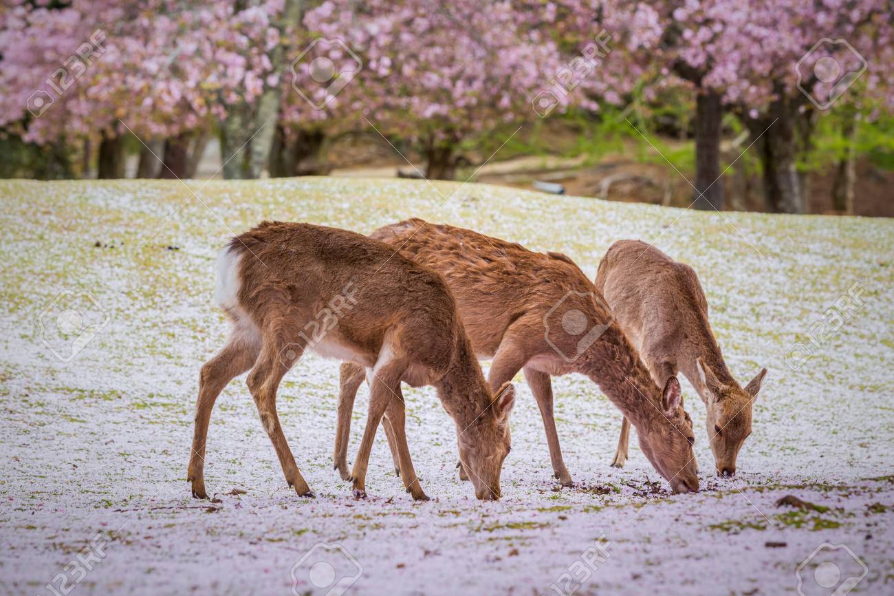 Deers At Nara Park During A Sunny Day In The Cherry Blossom Season Stock Photo Picture And Royalty Free Image Image 61728319