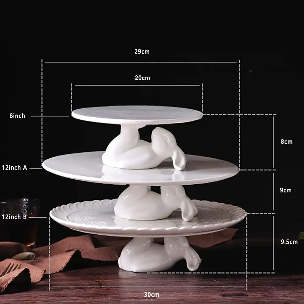 Cute Rabbit Ceramic Cake Dish Dessert Holder White Porcelain Plate