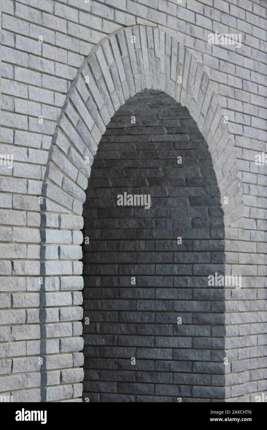 Brick Gray Wall With A Semicircular Arch Entrance Rough Cement