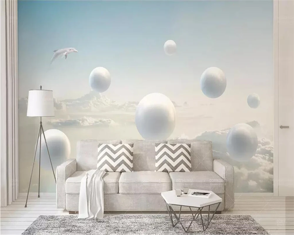Wellyu Custom Wallpaper 3d Photo Murals Dolphin Blue Sky White
