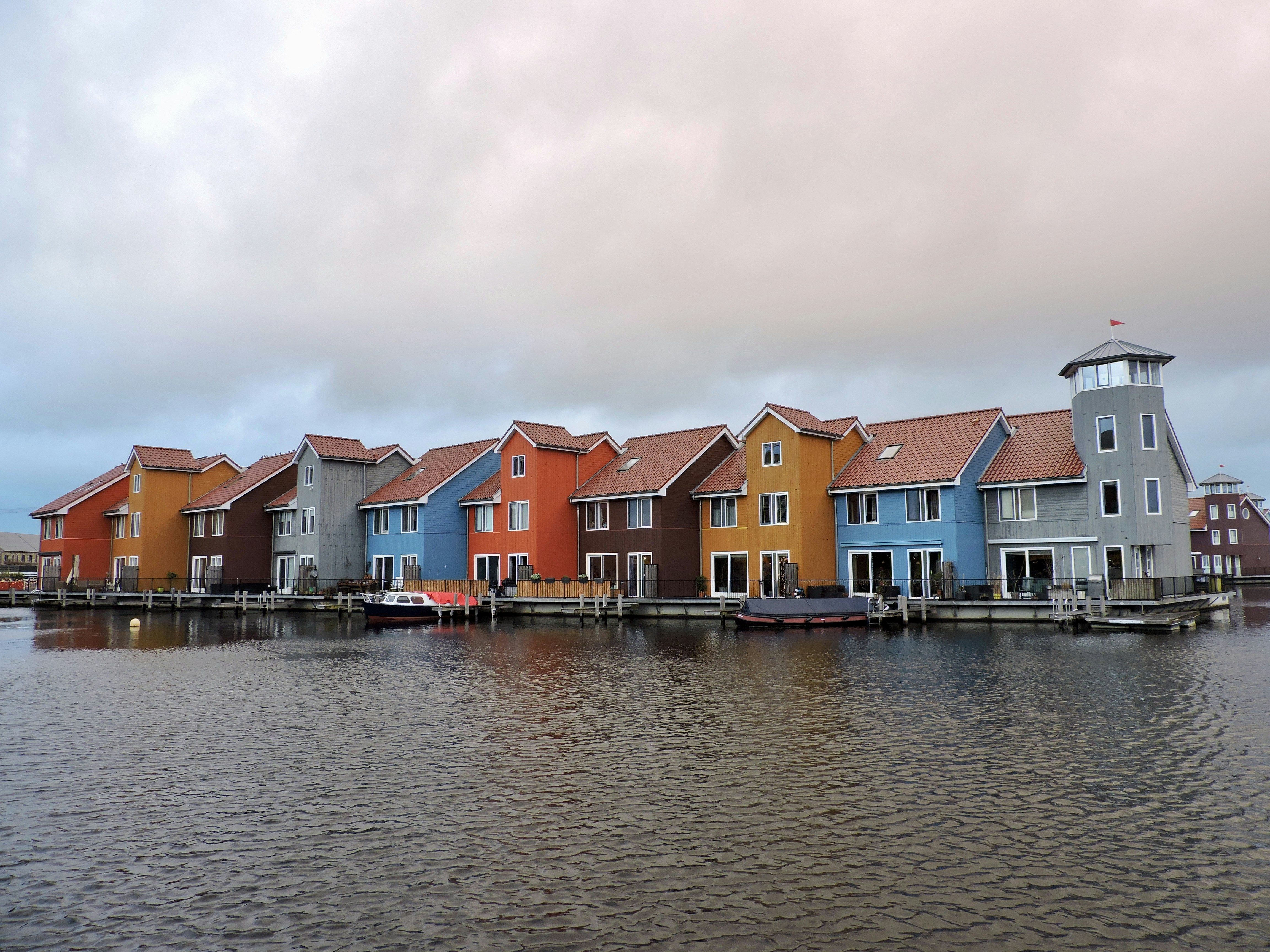 Multicolored Houses And Buildings Near Body Of Water Under White