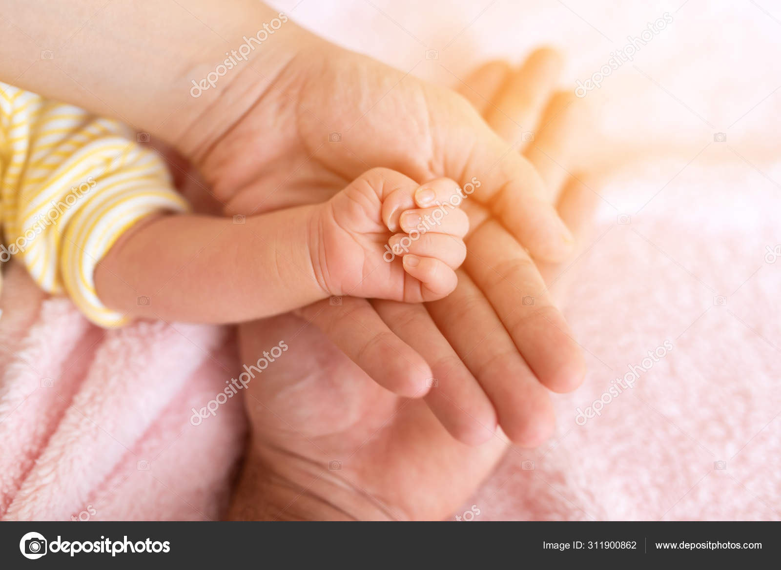 Family Baby Hands Father And Mother Holding Newborn Kid Stock