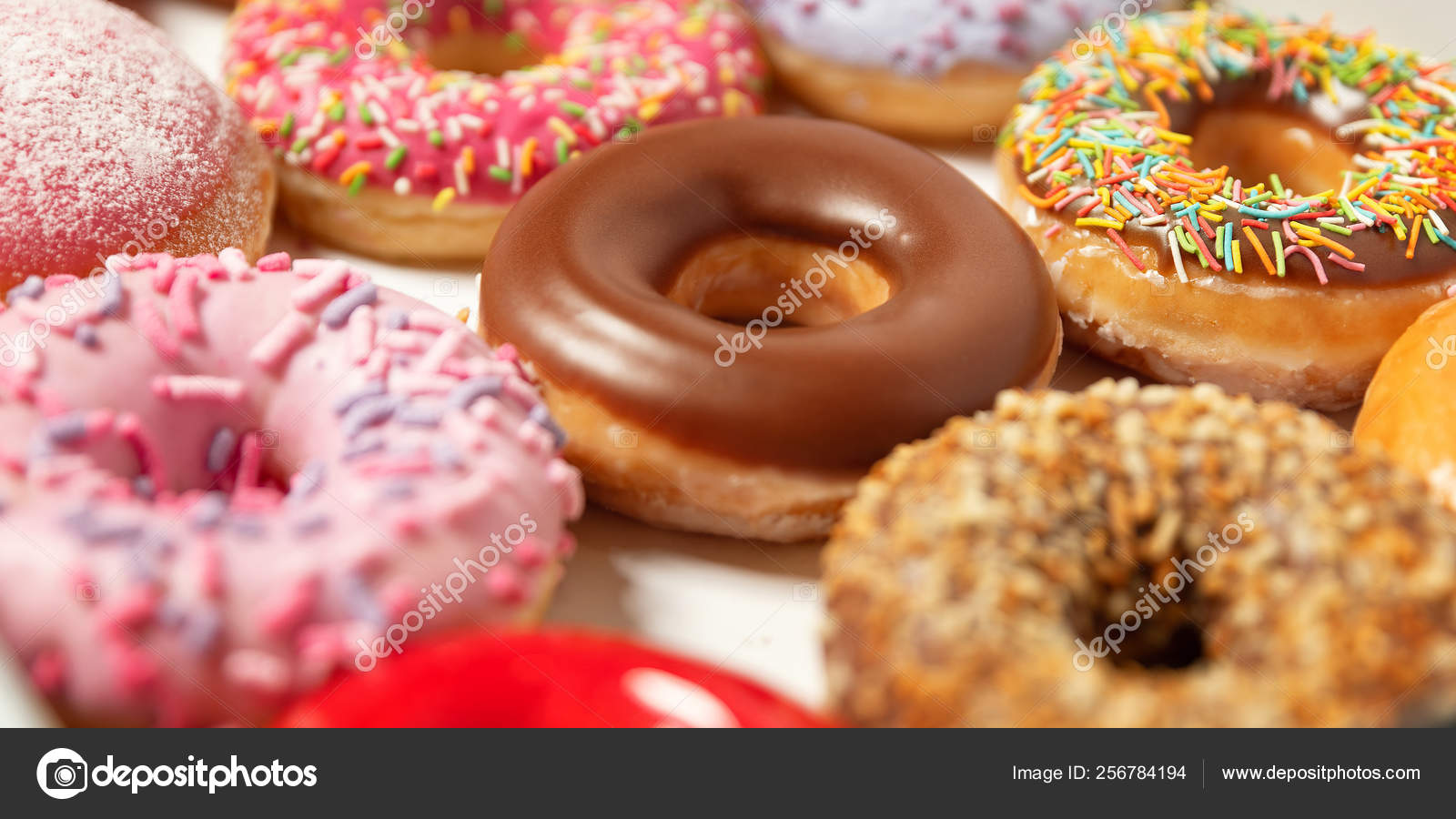Closeup Assorted Donuts With Different Fillings In Box For Pastry