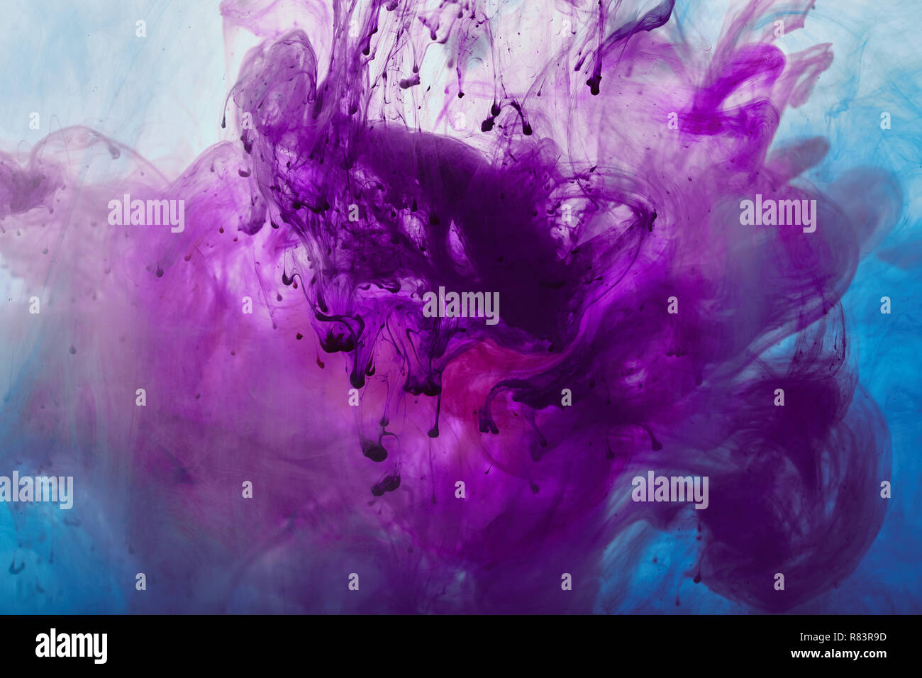 Close Up View Of Purple And Blue Mixing Paint Swirls Stock Photo