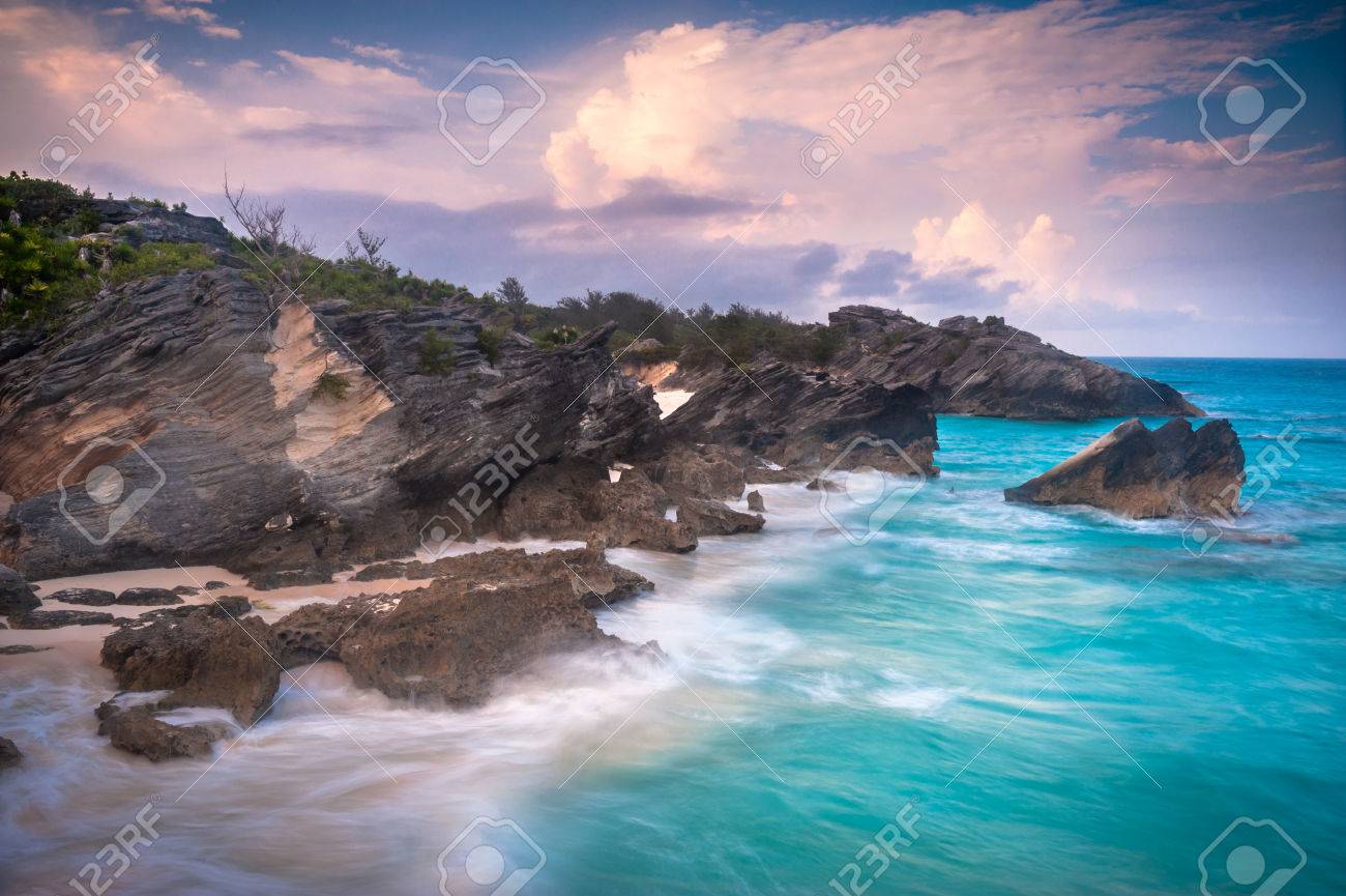Sunset View Over The Horseshoe Bay Beach On Bermuda Island With
