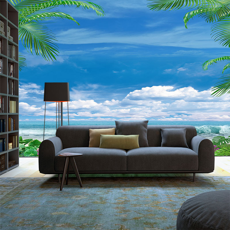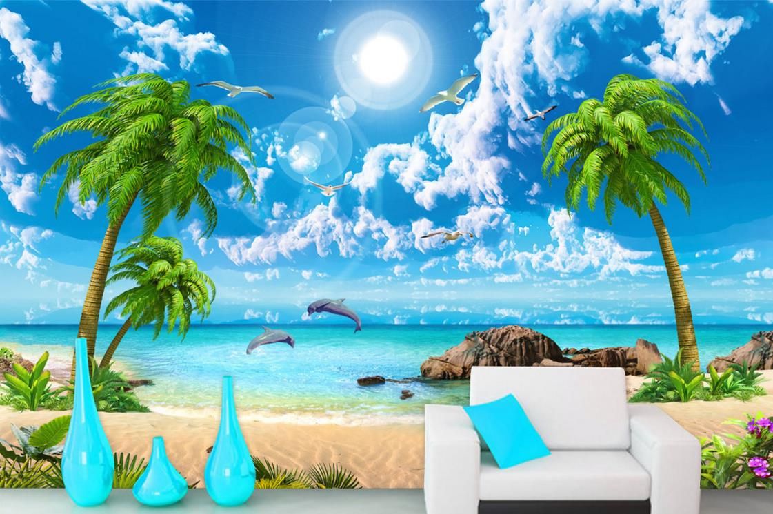 Mural 3d Wallpaper Mural Love Dolphin Coconut Tree Beach Hawaii
