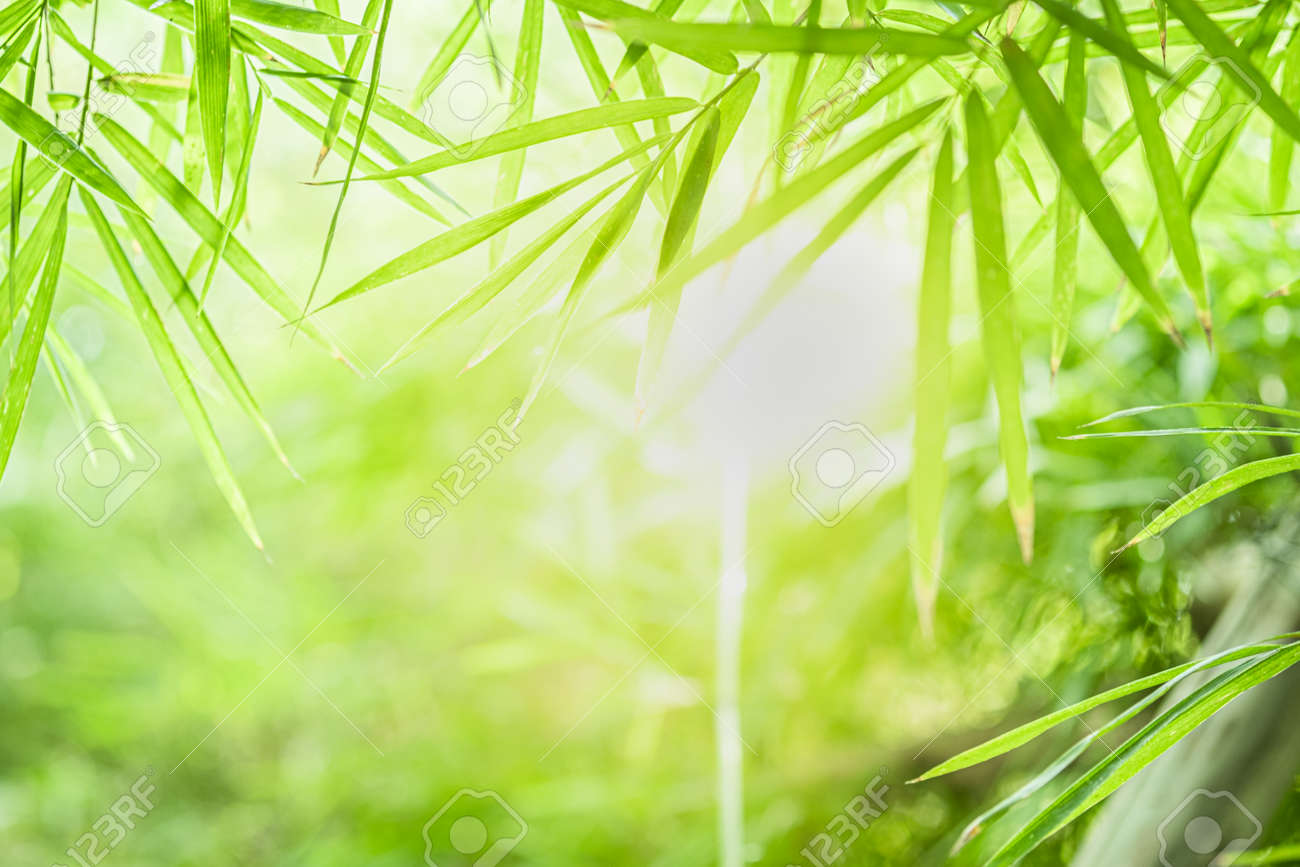 Closeup Beautiful View Of Nature Green Bamboo Leaf On Greenery