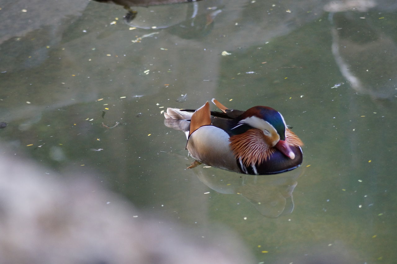 Beige Black Mandarin Duck On Red Waters During Daytime Hd Image Wallpapers
