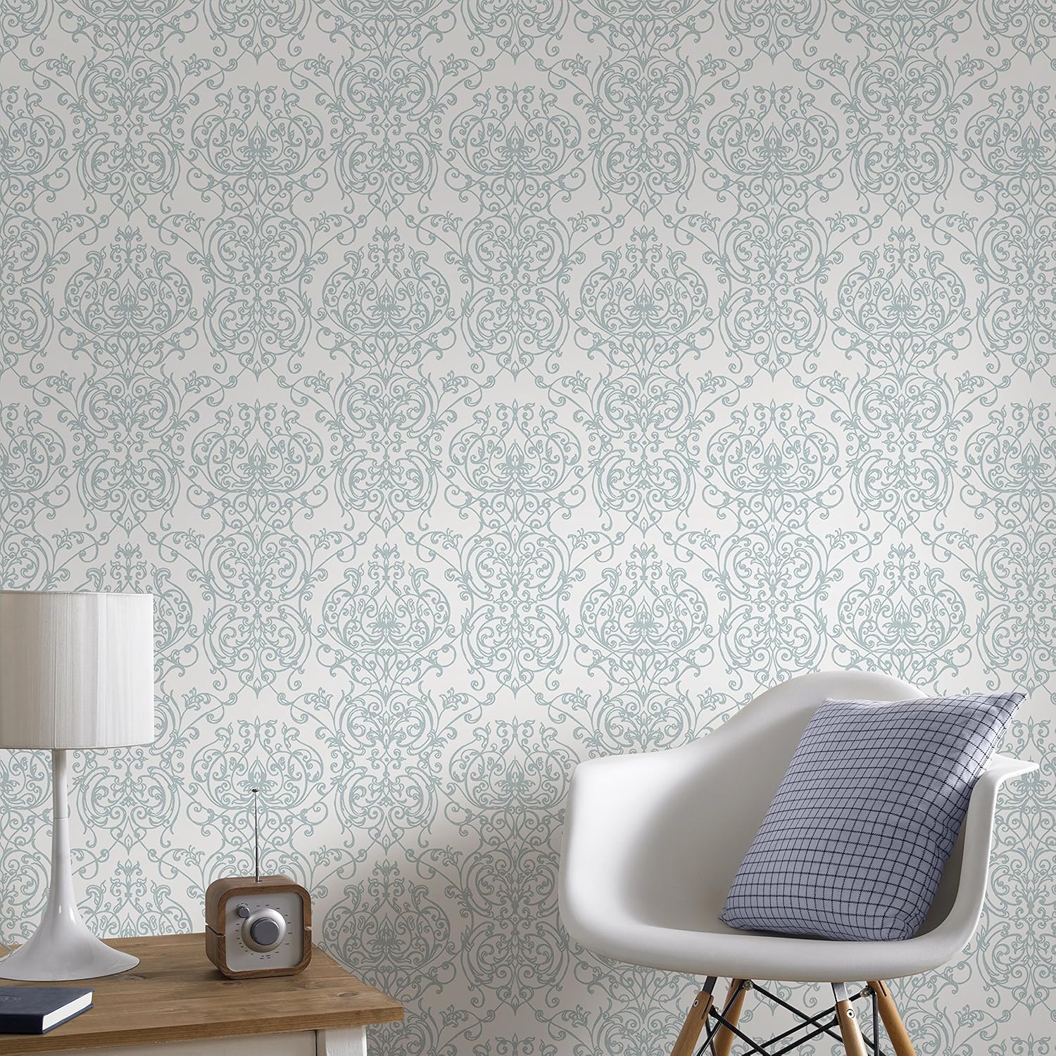 Graham Brown 103268 Empress Damask Wallpaper Duck Egg White