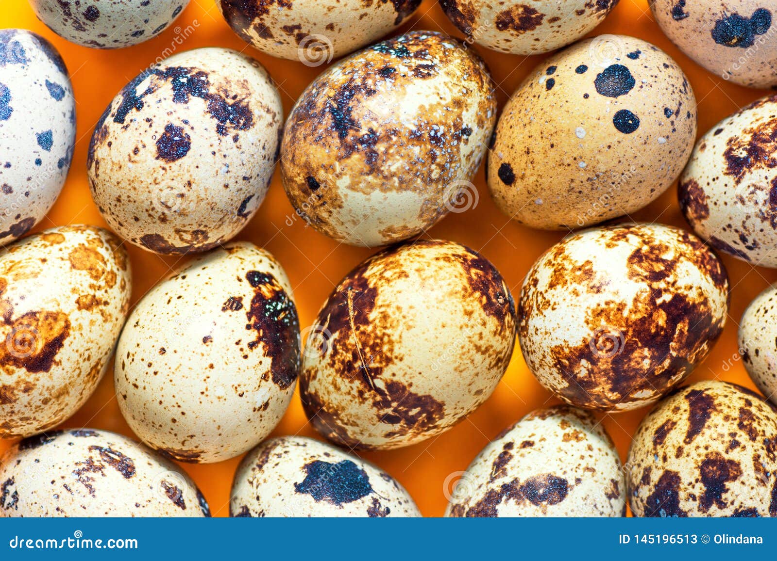 Speckled Quail Eggs Arranged In Pattern On Bright Yellow
