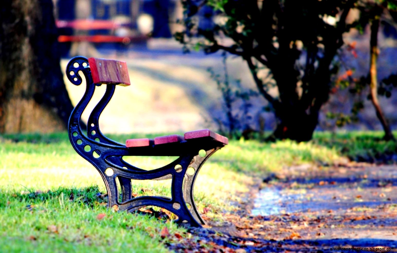 Landscapes Trees Park Bench Autumn Fall Wallpaper 1920x1200
