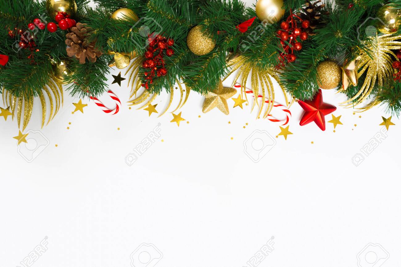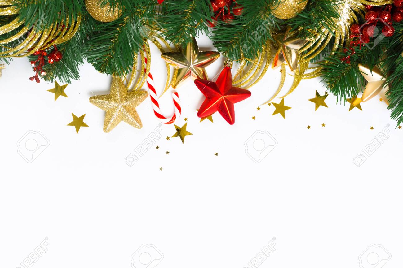 Christmas Frame Of Spruce Branches Red Berries And Decorations