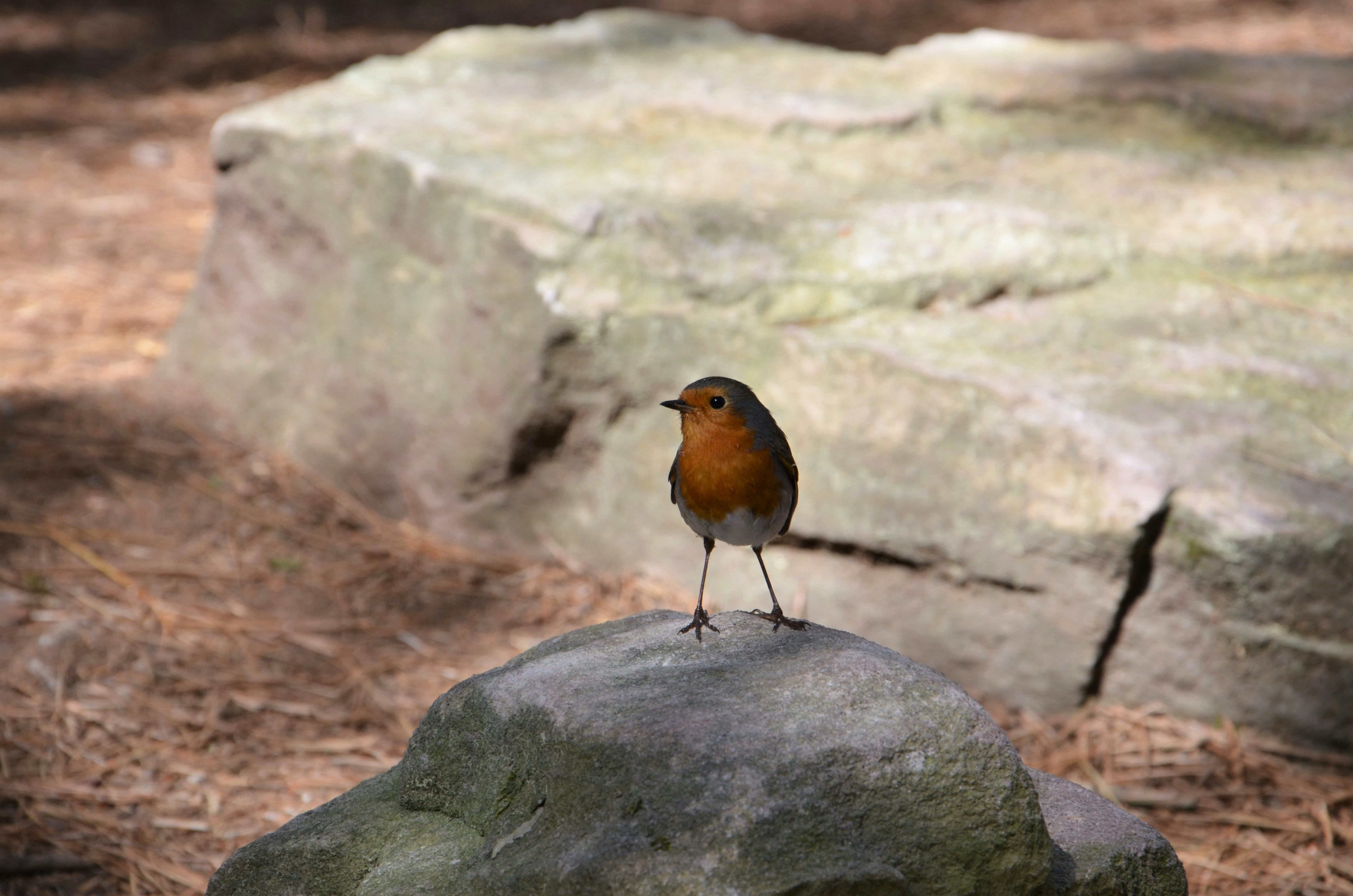 Brown And Black Bird Perched On Gray Rock Photo Free Bird Image