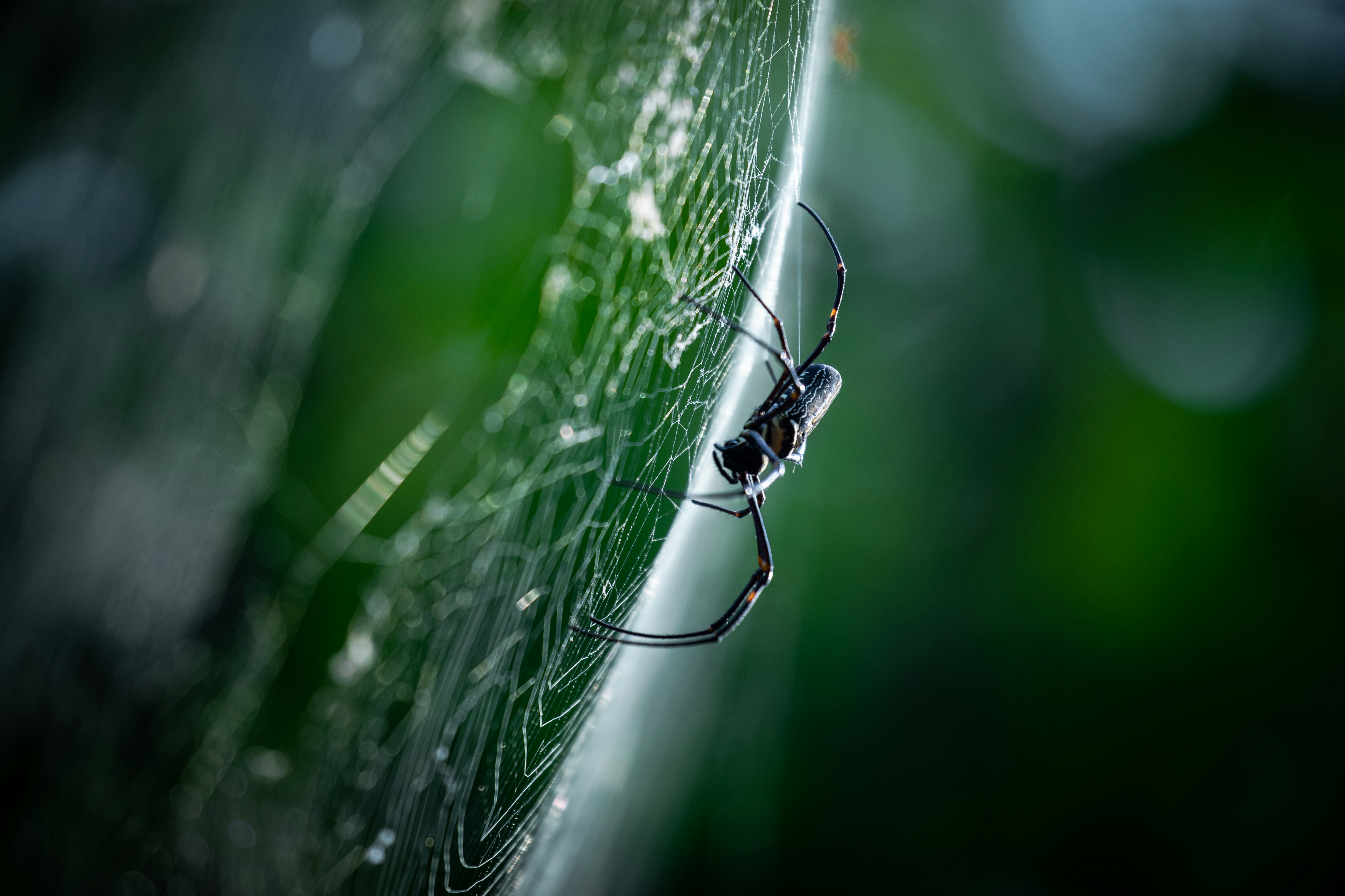 Black And White Spider On Web In Tilt Shift Lens Photo Free