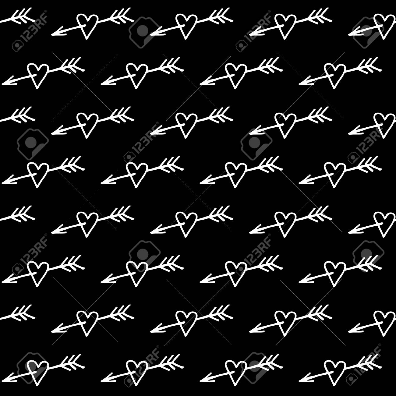 Abstract Heart Pattern With Hand Drawn Hearts Cute Vector Black