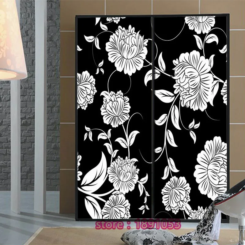 Black And White Flower Pattern Opaque Glass Film Wardrobe Living