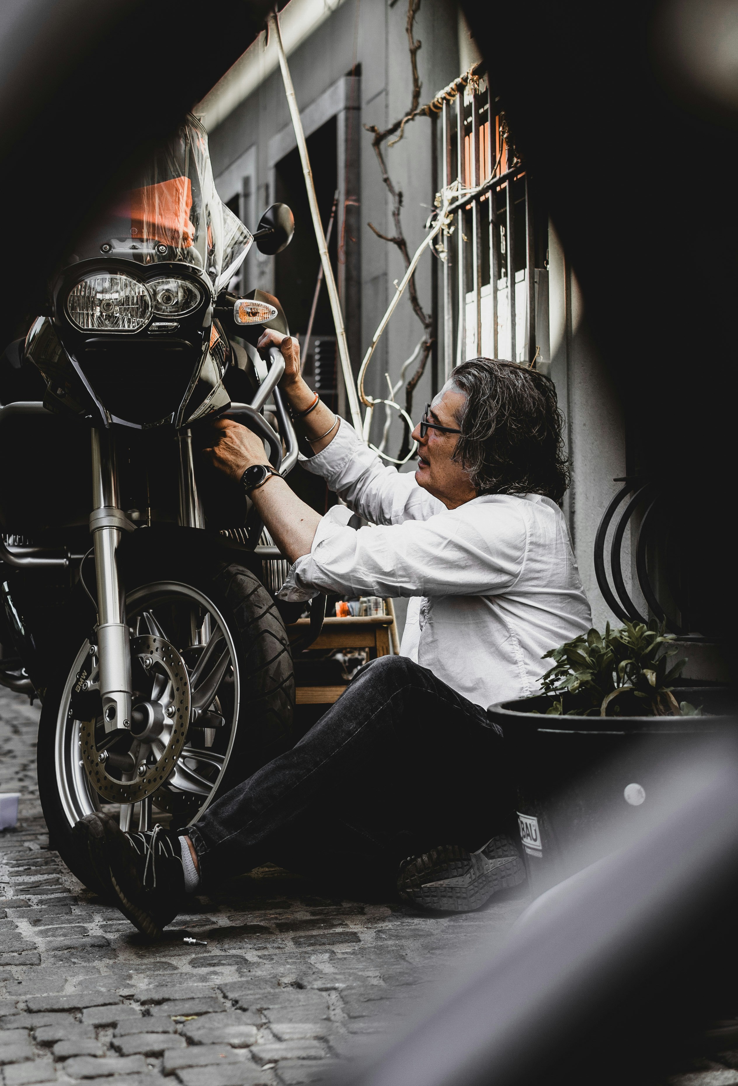 Hd Wallpaper Man Standing Near Black And White Bmw Standard