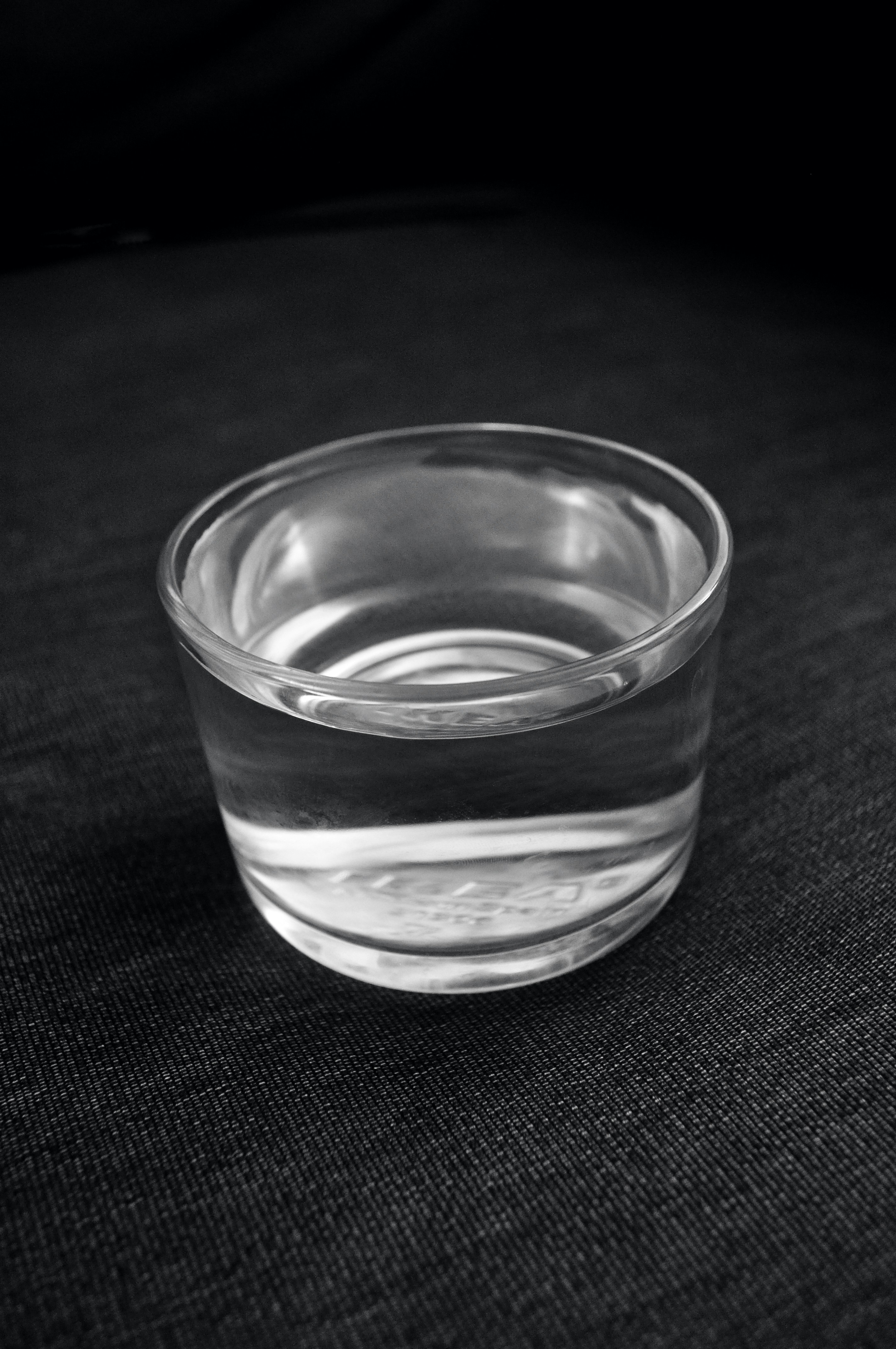 Clear Drinking Glass On Black Textile Photo Free Black And White