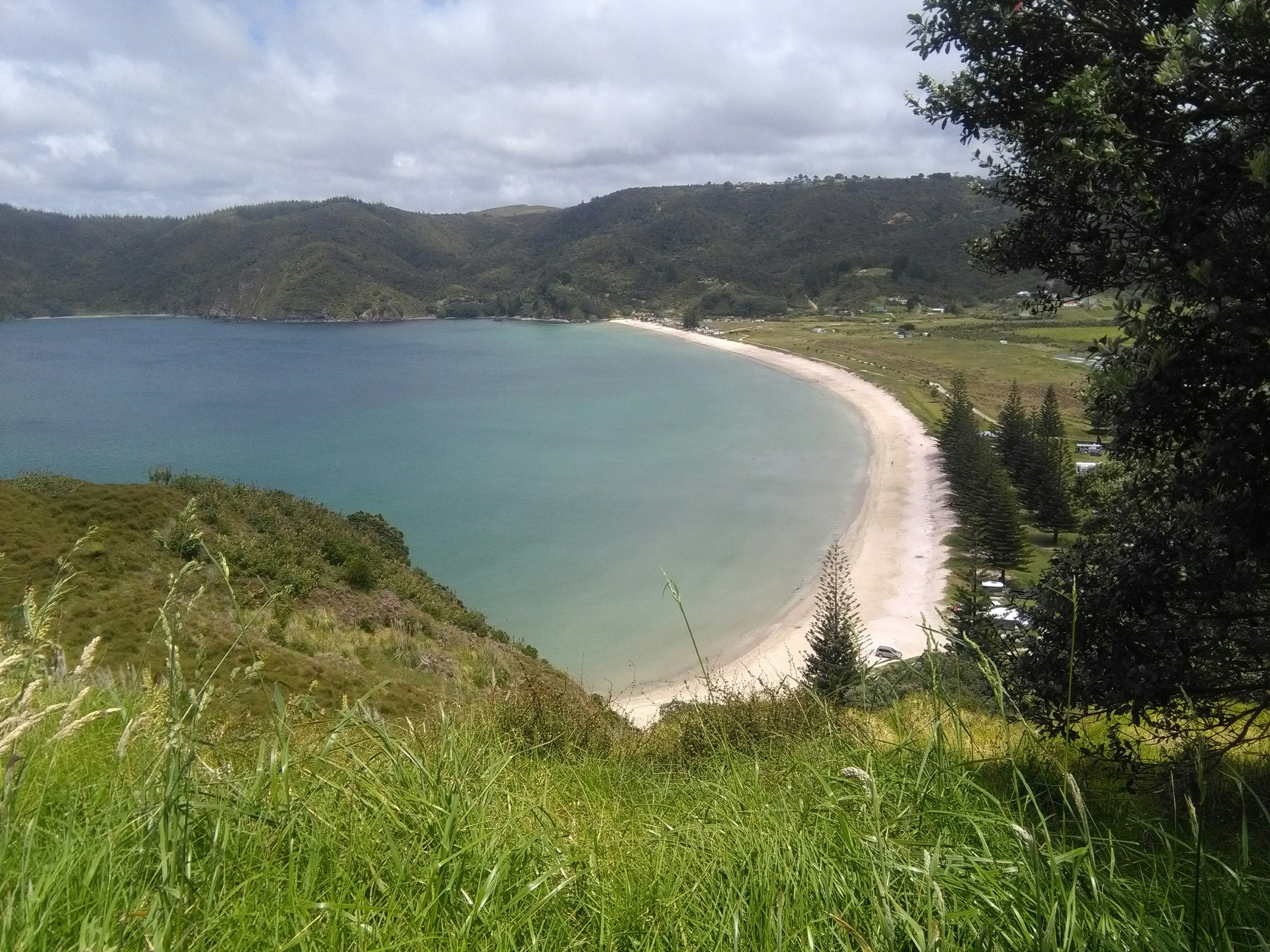Beach Sand Coast Beaches Green Grass Horizon Sky Clouds