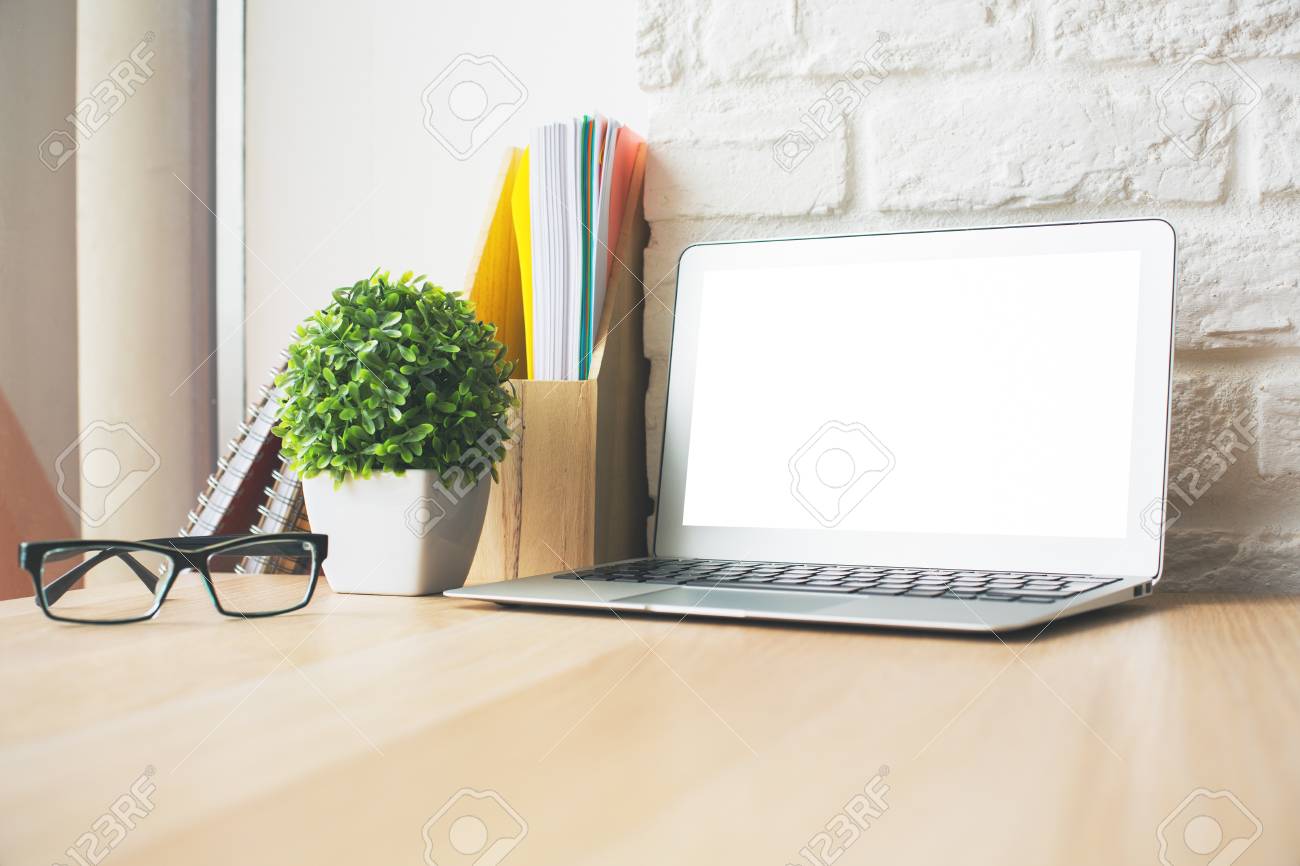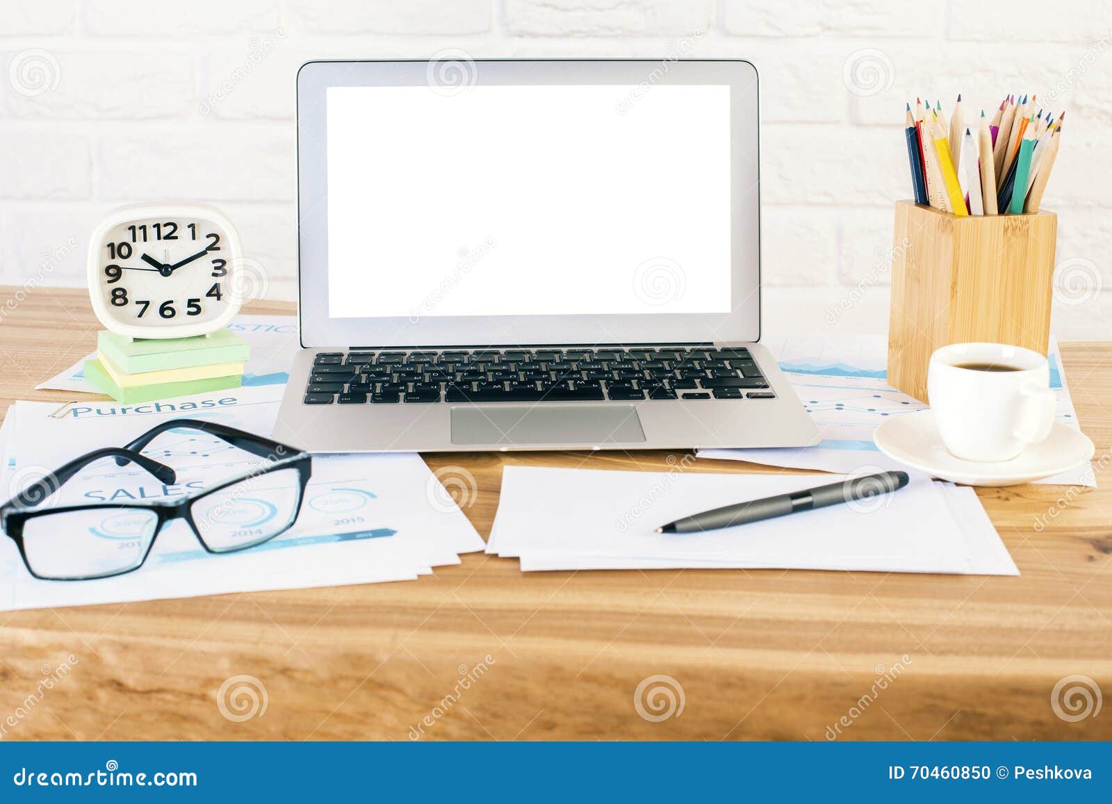 White Laptop And Glasses Front Stock Photo Image Of Charts Desk 70460850