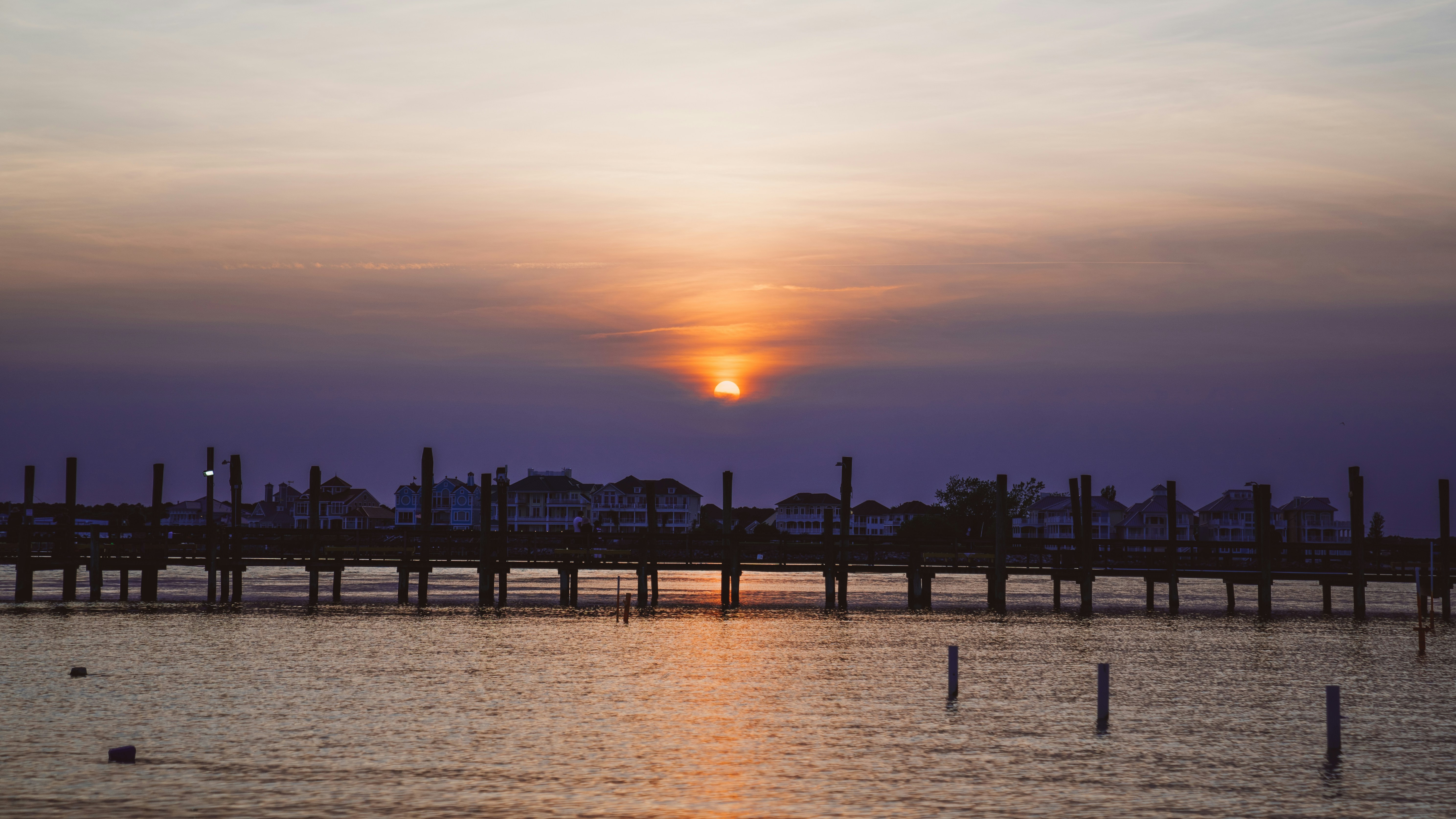 Free Picture Nature Dawn Sun Dusk Sunset Water Pier Sea