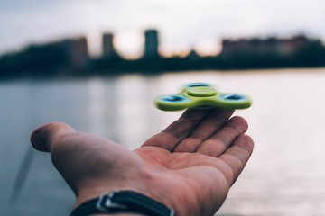 Person Playing With Green Fidget Spinner Free Stock Photo