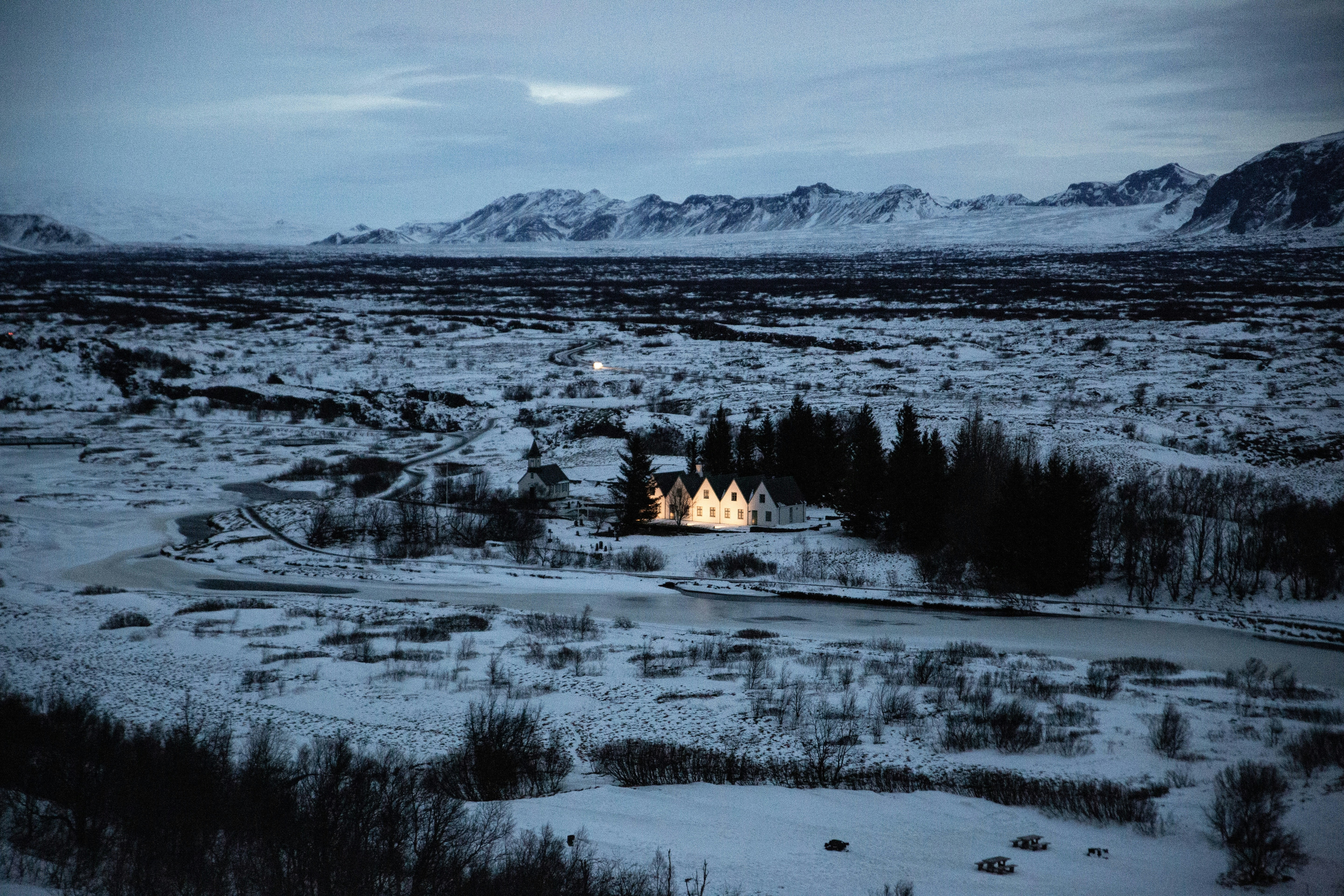 Houses Beside Trees On Snowfield During Day Photo Free Plant
