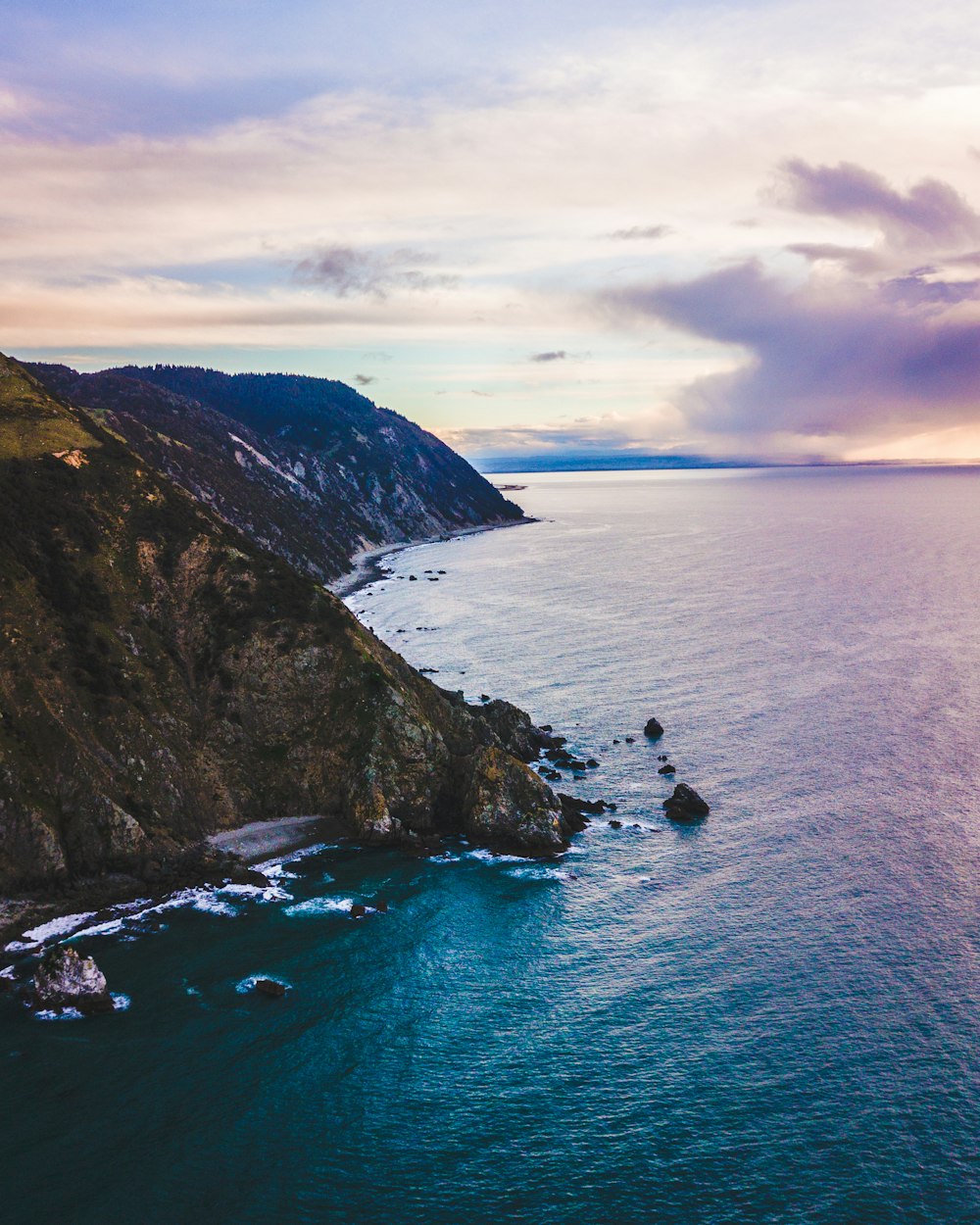 Body Of Water Near Mountain Under White Clouds At Daytime Nohat