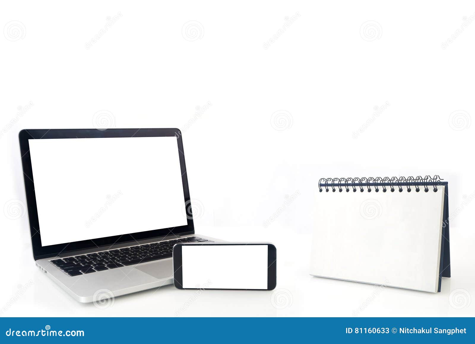 Desktop Loop Wire Binding Book And Blank Screen Of Notebook Cell Phone Tablet Smartphone On Isolated White Background Stock Image Image Of Greeting Mock 81160633