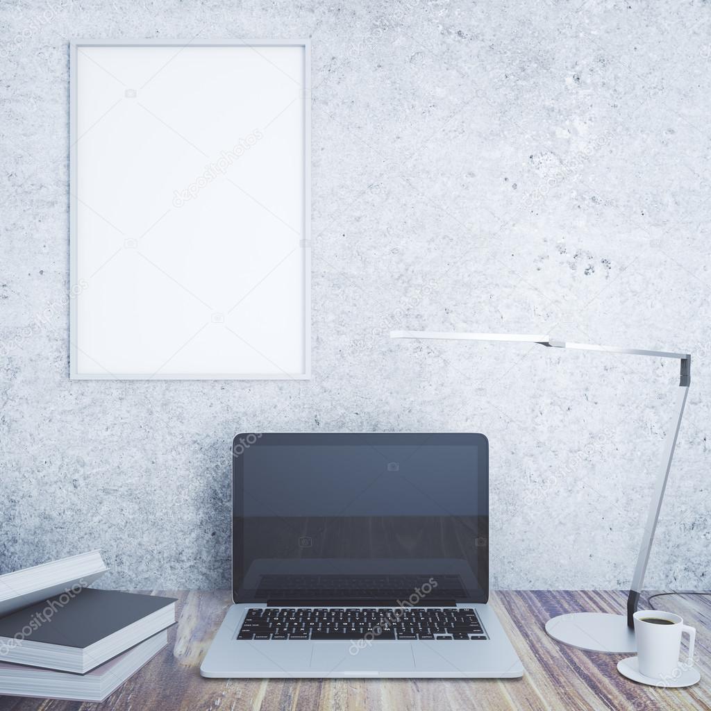 Creative Designer Desktop With Blank Laptop Books Coffee Cup