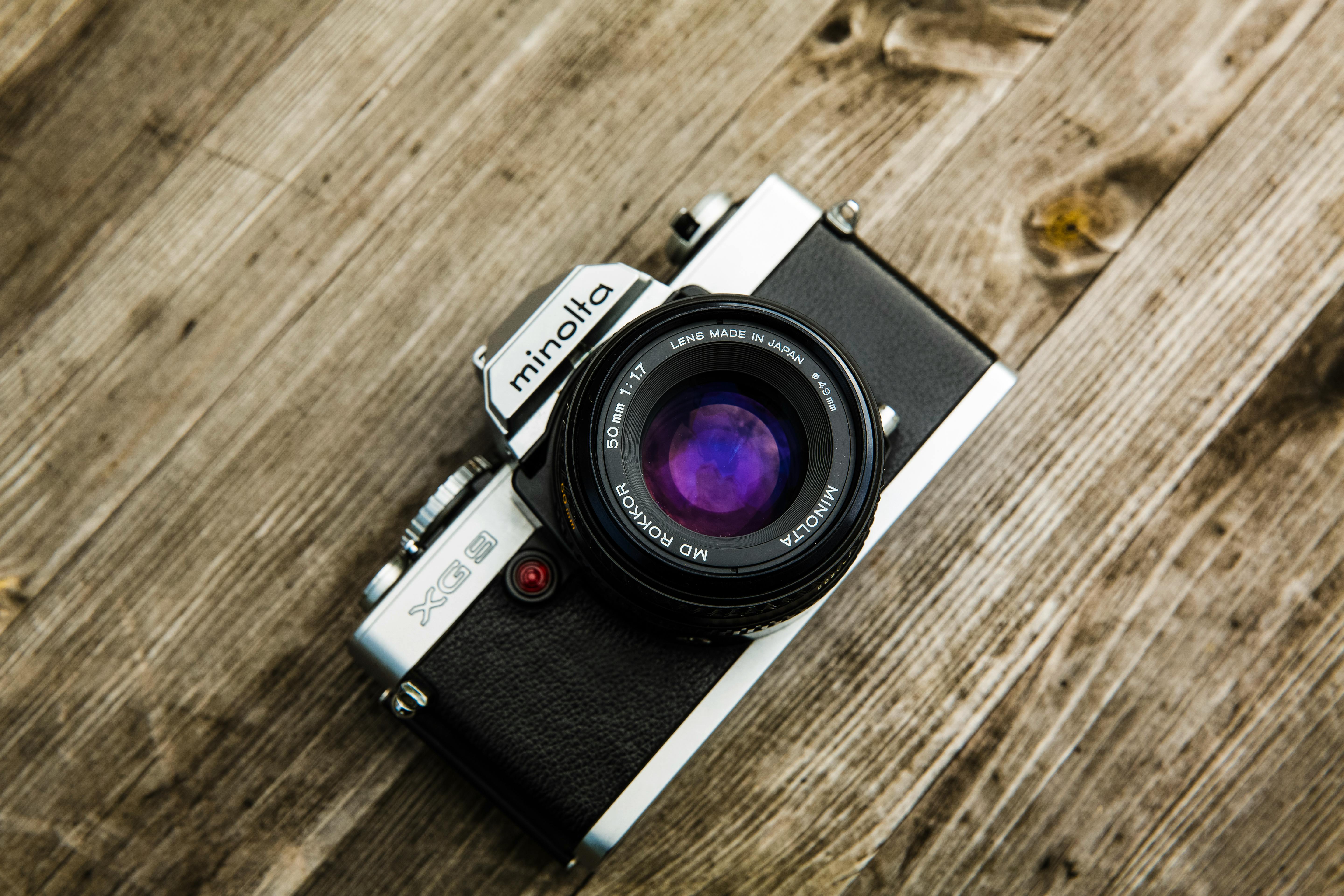 Shallow Focus Photography Of Silver And Black Dslr Camera On Brown