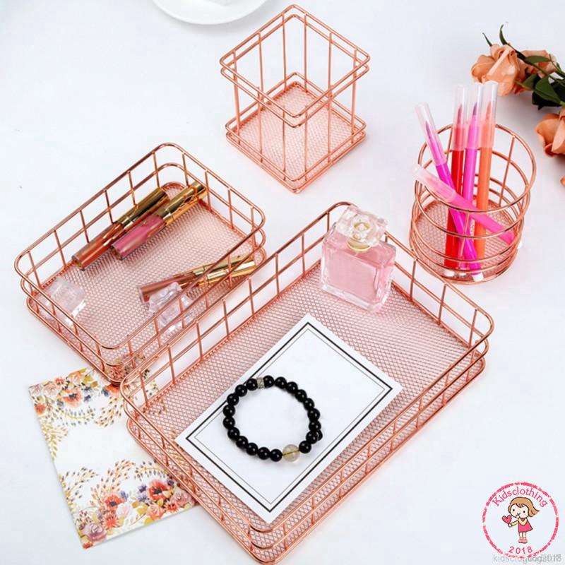 Wrought Iron Storage Basket Rose Gold Desktop Storage Box Debris