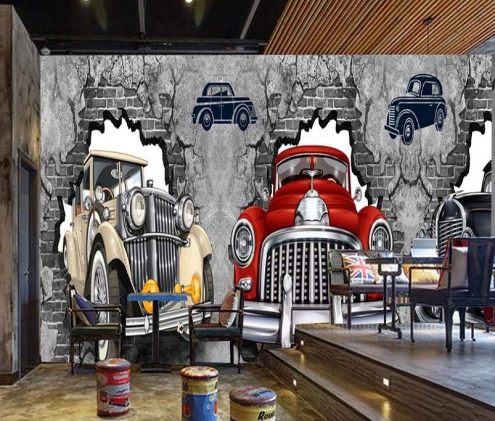 Wpfzh Vintage Custom Wallpaper 3d Relief Classic Cars Broken Wall
