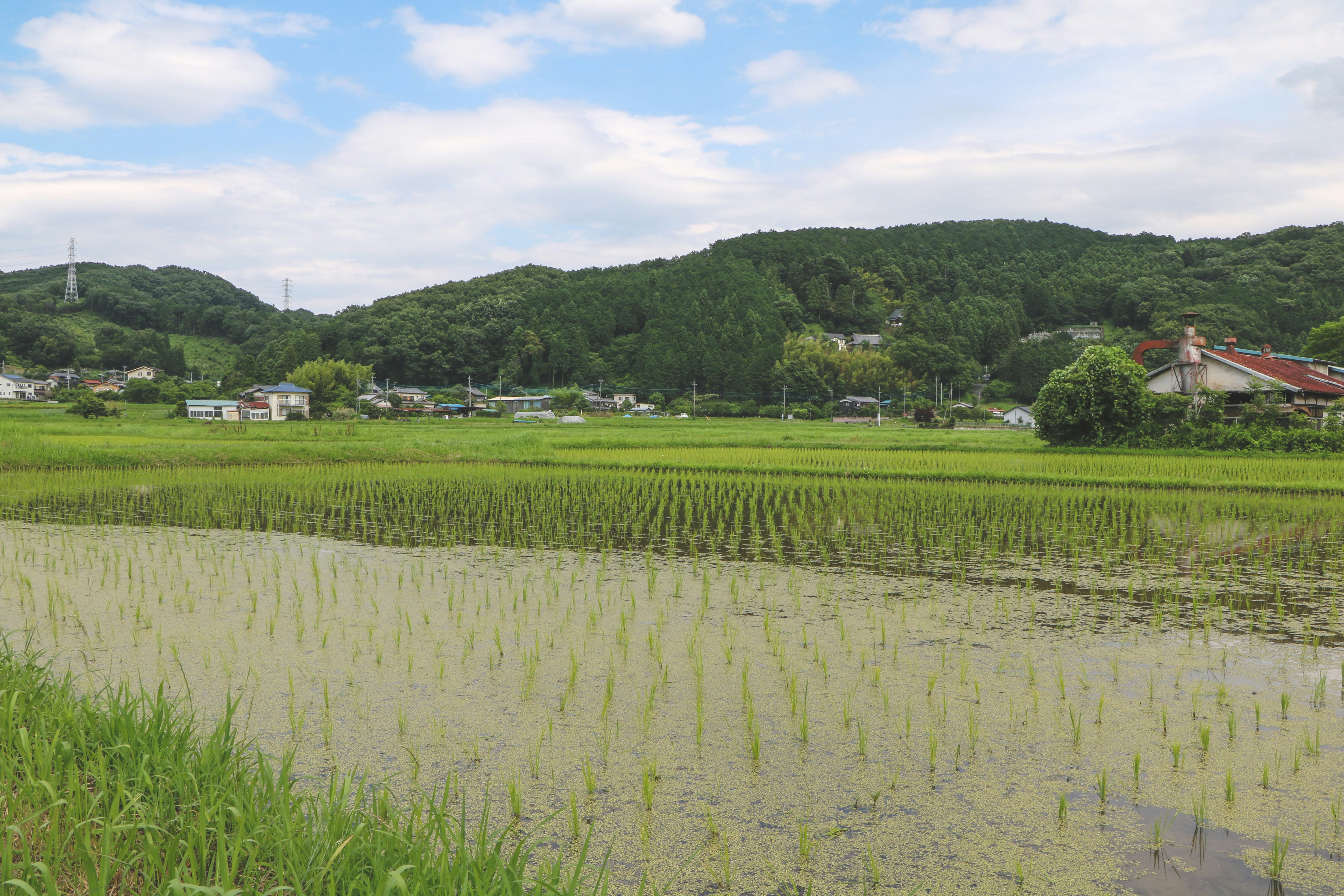 Green And Brown Grass Field Grass Clouds Trees Hd Wallpaper