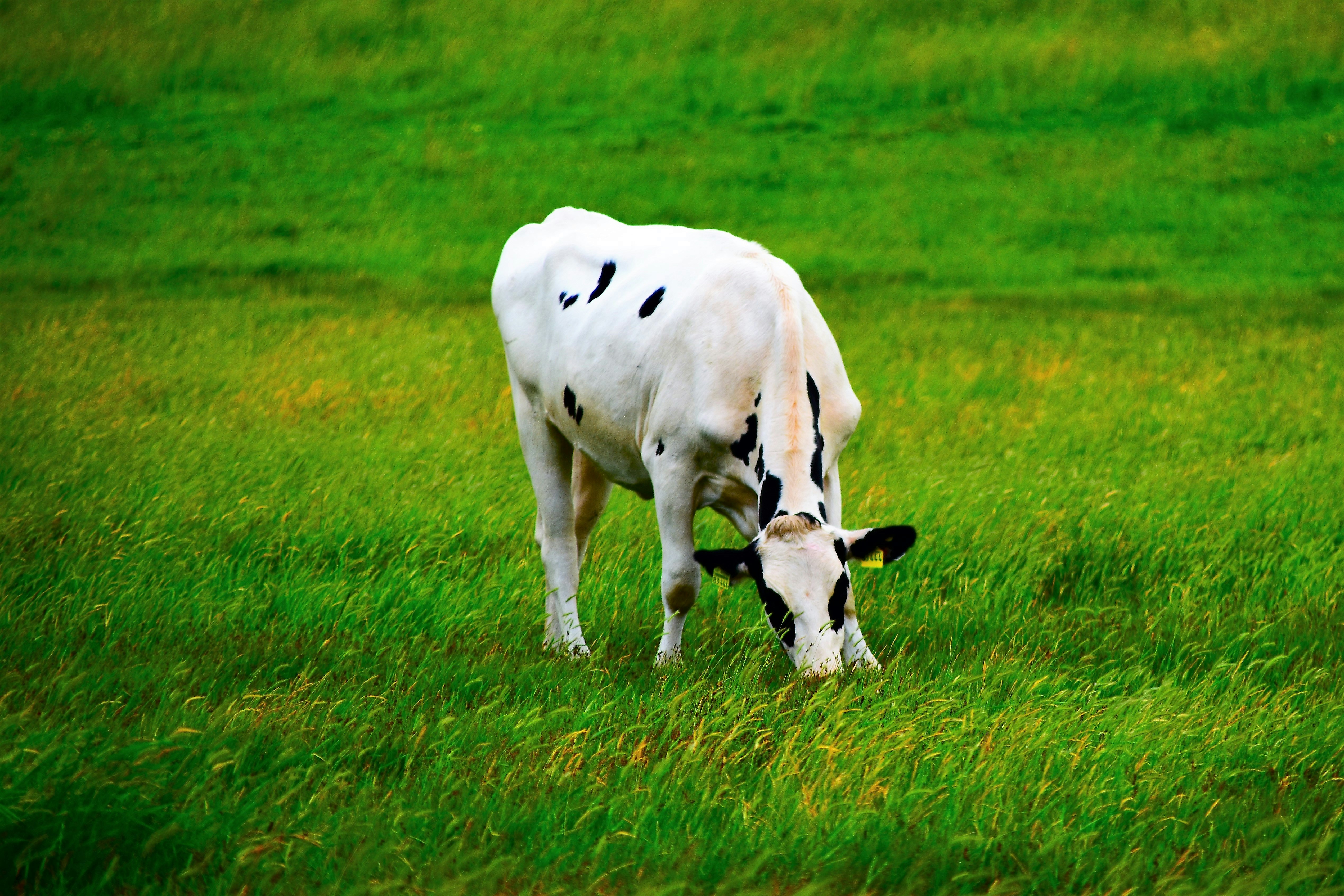 White And Black Cattle Calf On Green Lawn Grasses At Daytime Photo