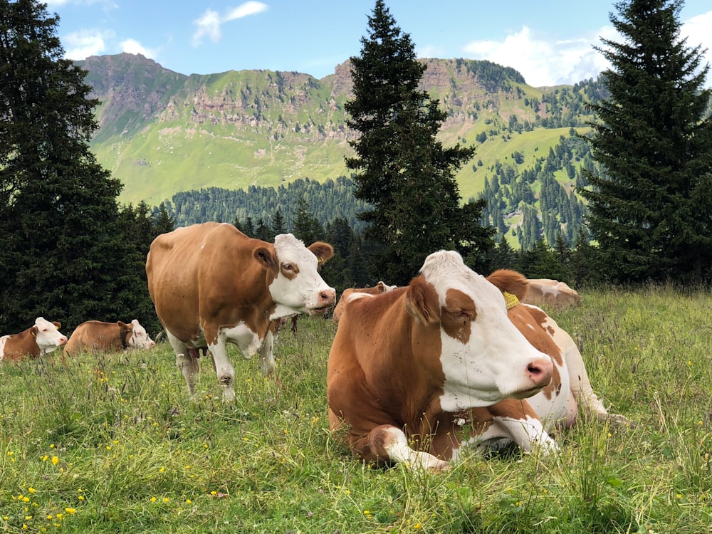Hd Wallpaper Three Brown Cows On Hill With Grasses Swiss Alps