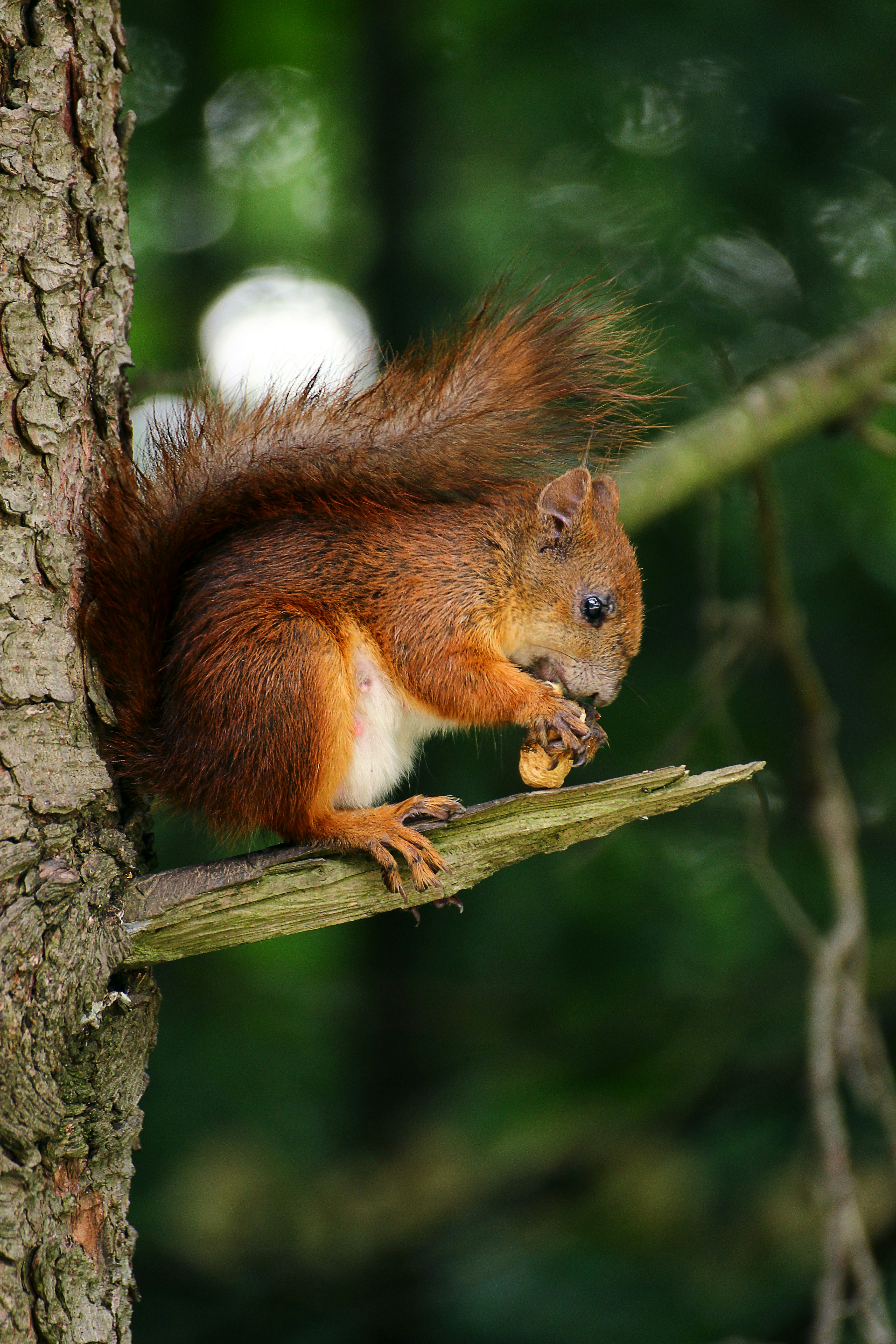 Brown Squirrel On Branch Of Tree Eating Nut Photo Free Animal