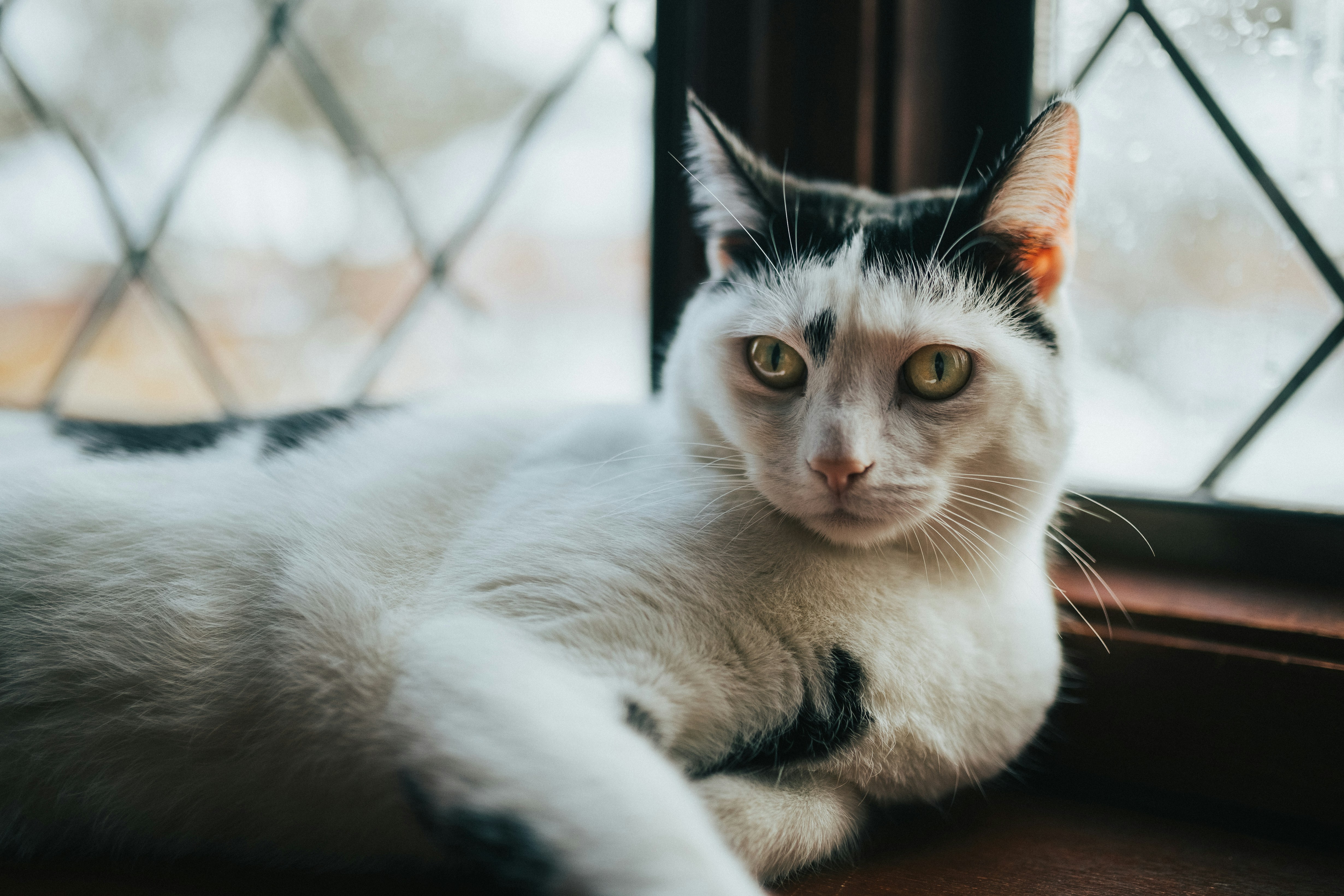 Hd Wallpaper Brown Wood Framed Painting Of White And Black Cat