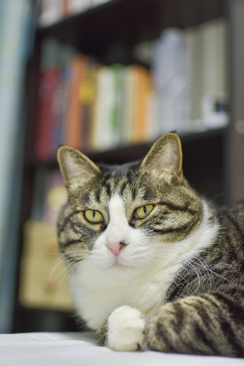 Brown Tabby Cat On Blue And White Textile Photo Free Furniture