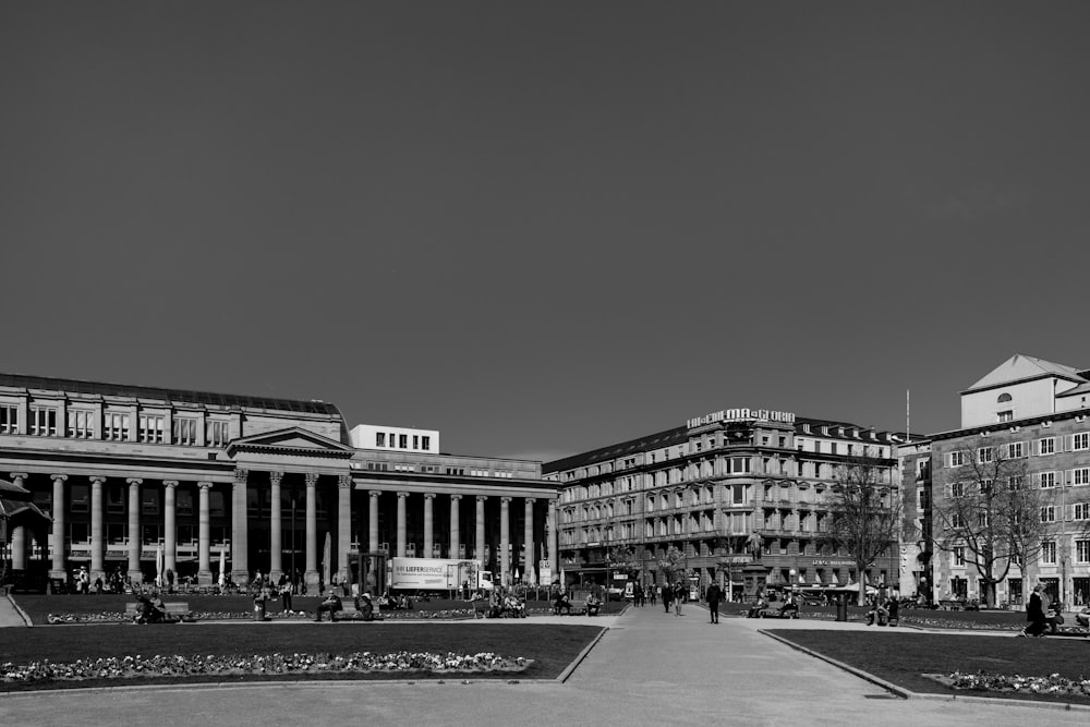 Building With 8 Concrete Pillar In Front Grayscale Photo Free