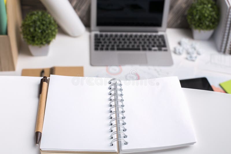 Spiral Notebook Beside Pen And Plants Picture Image 117420854