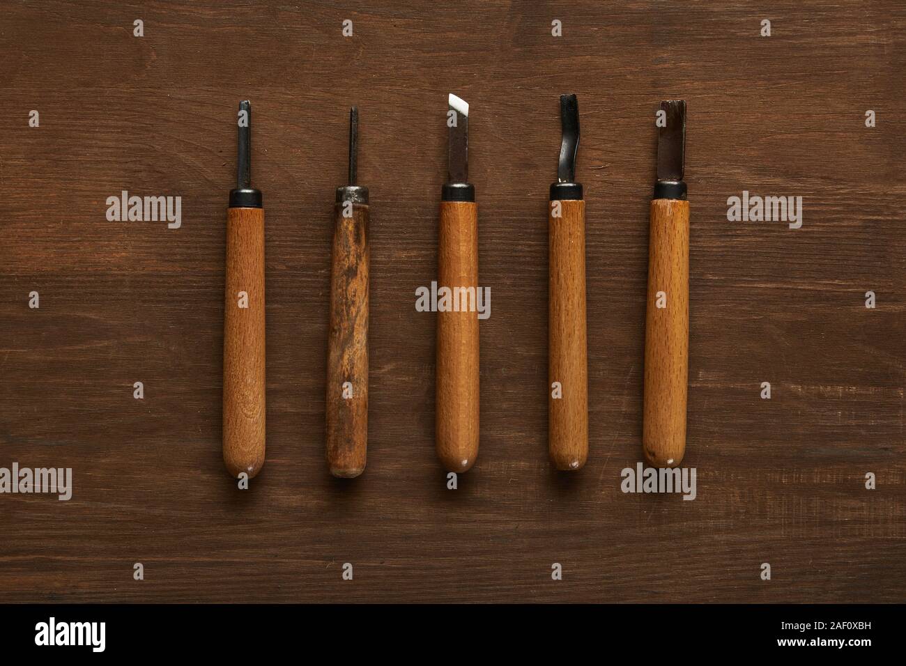 Top View Of Carpentry Tools On Wooden Table Stock Photo 336237541