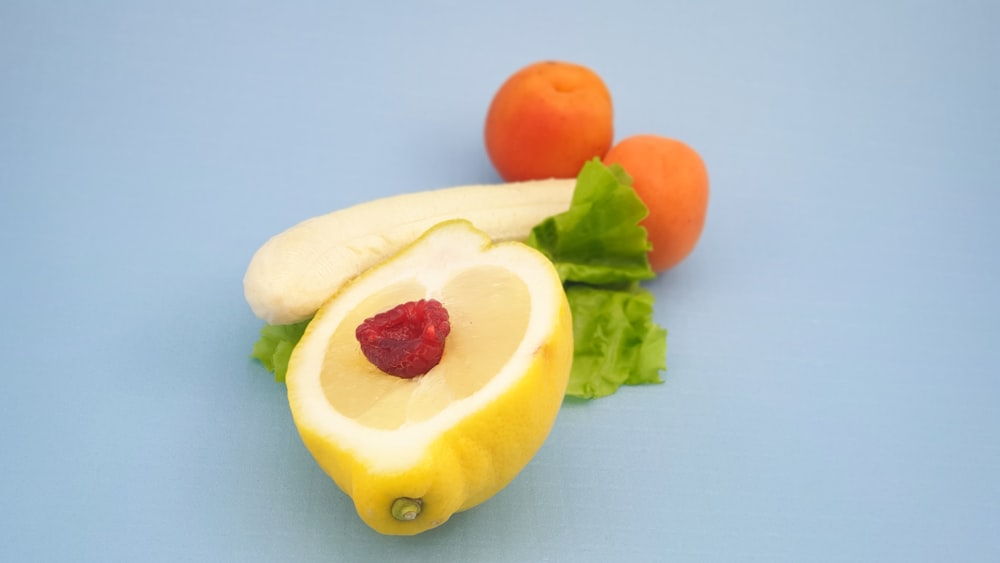 Carrot Fruit Beside Lemon Fruit On Black Wooden Table Free Stock